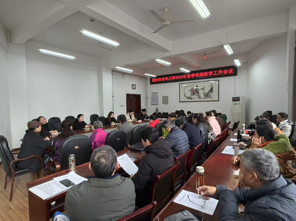 2月25日,宿州市老年大学召开2026年春季学期教学工作会议,市老年大学教育管理指导中心(市老干部活动中心)负责同志主持会议,中心全体人员和各班教师参加会议。