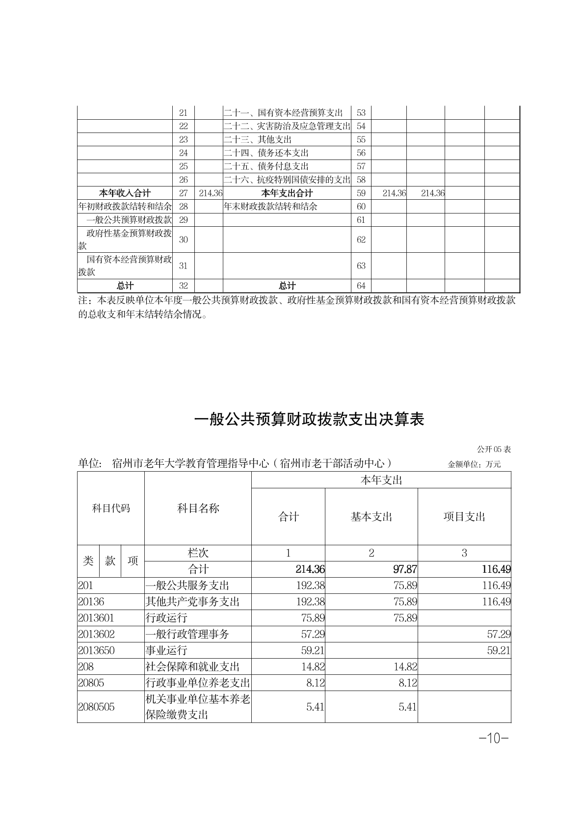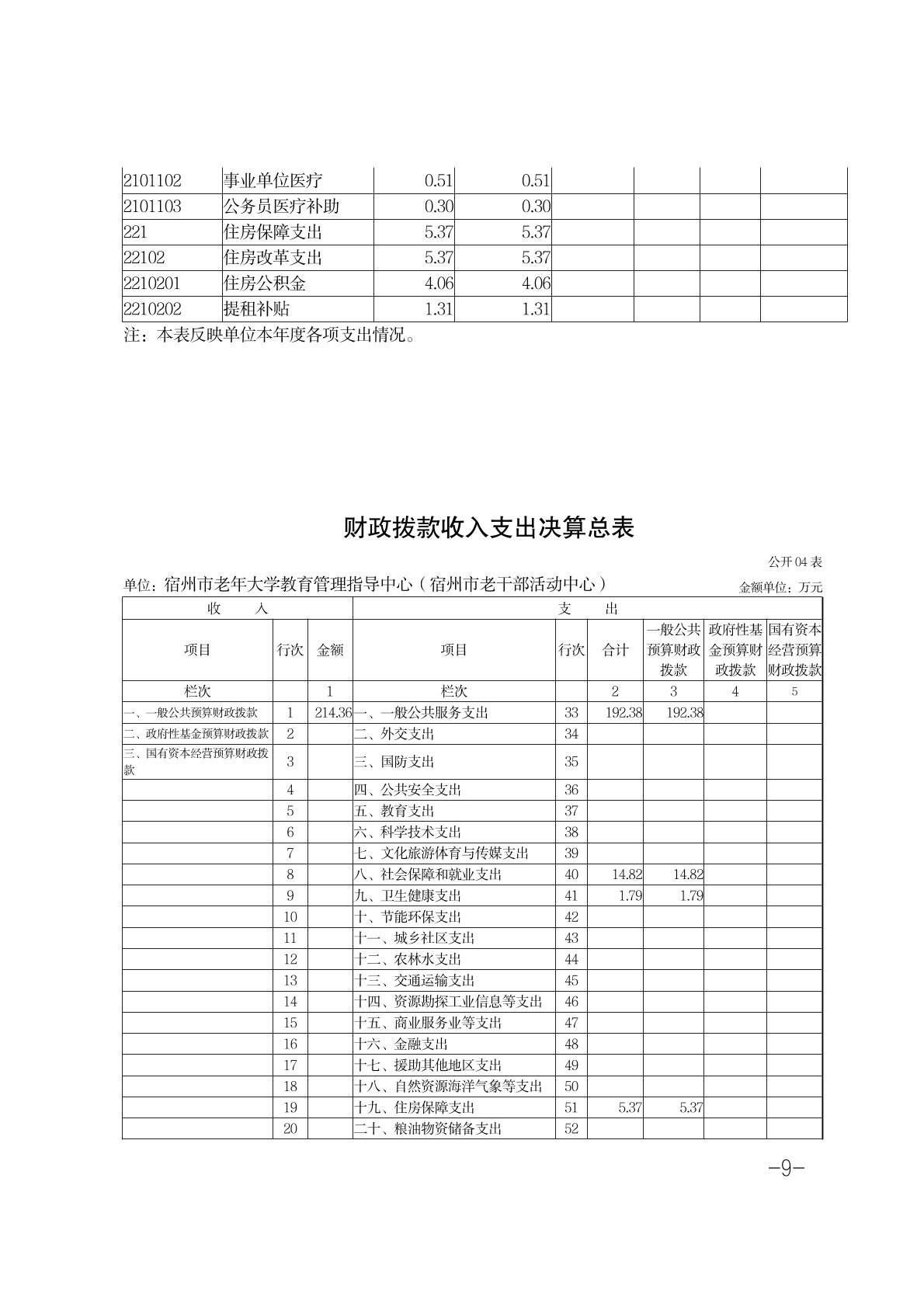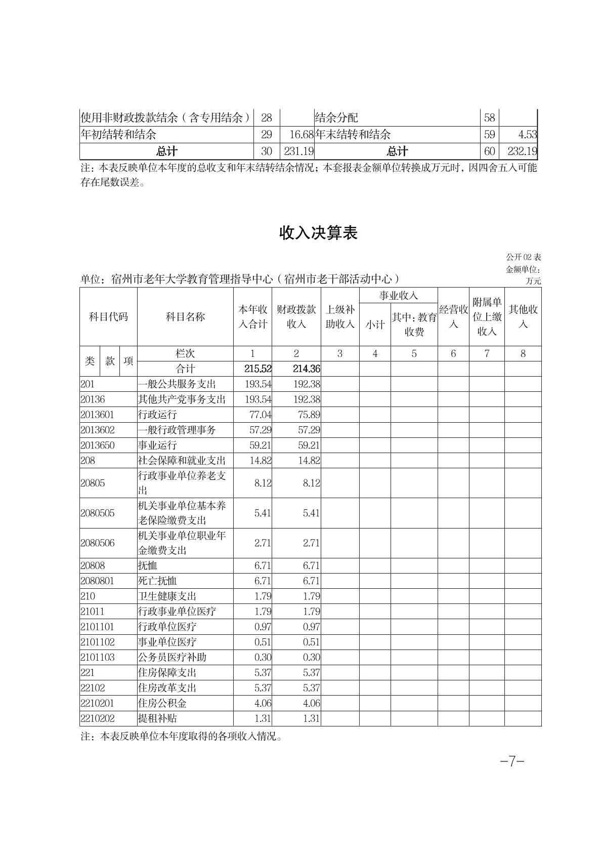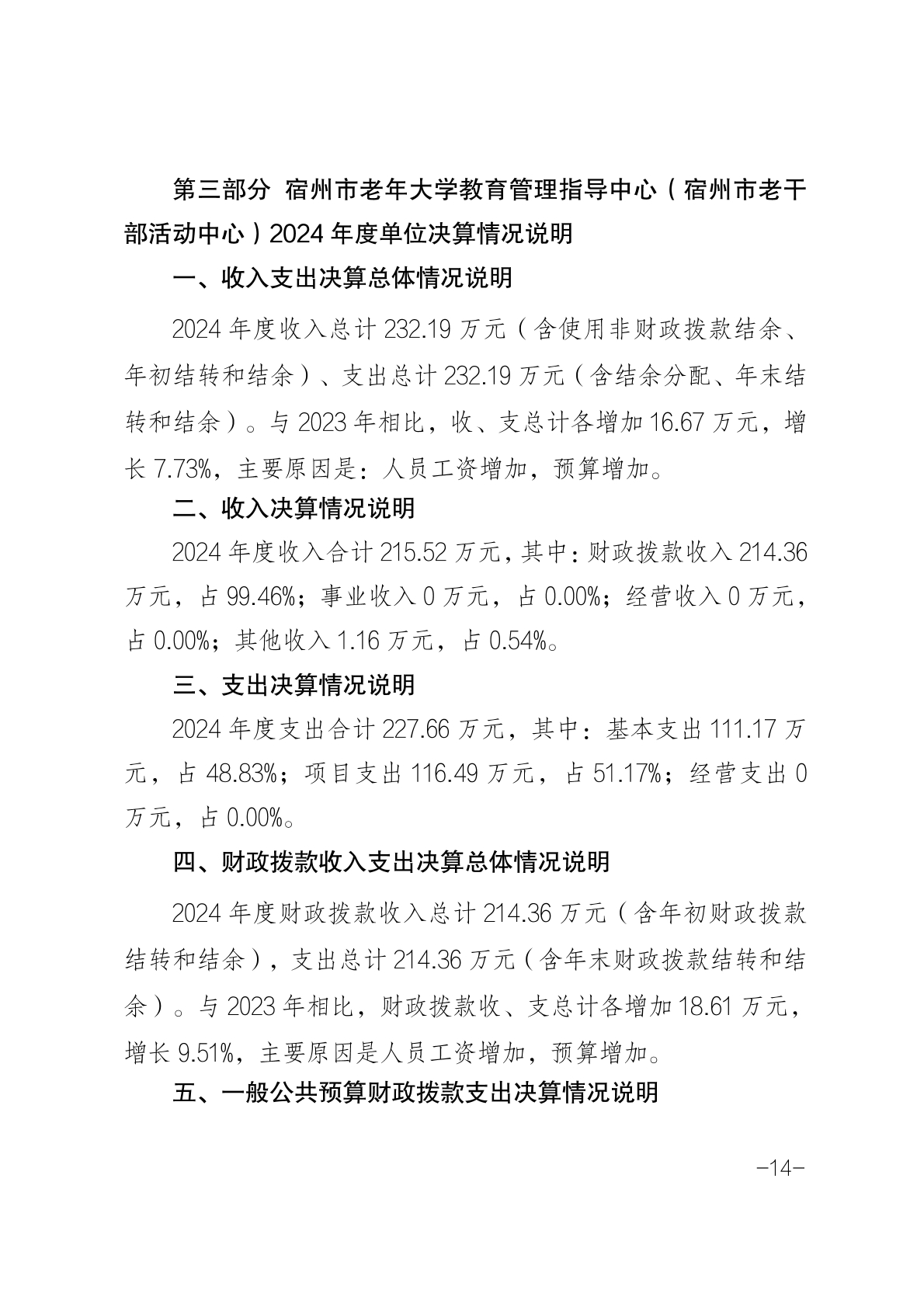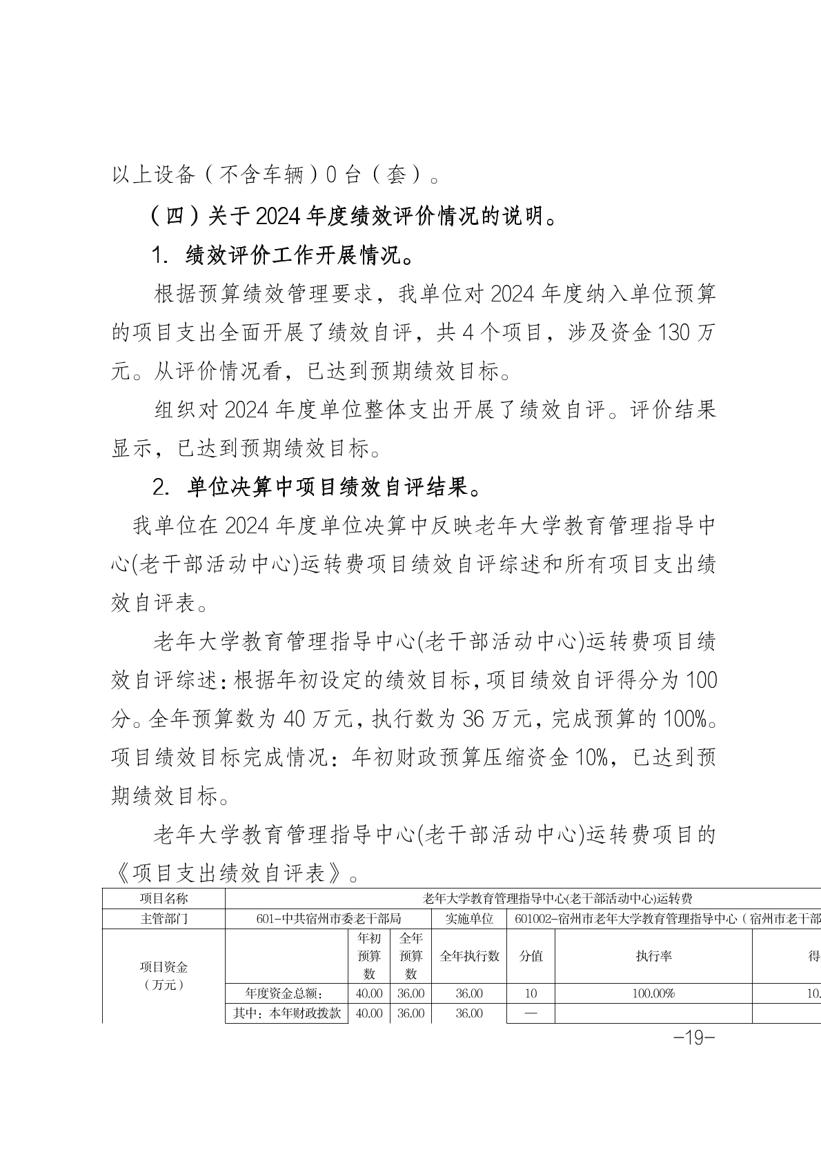 宿州市老年大学教育管理指导中心(宿州市老 干部活动中心)2024 年度单位决算