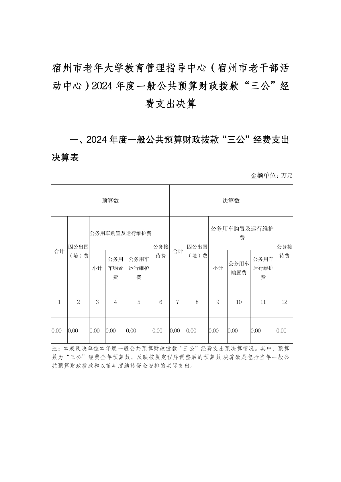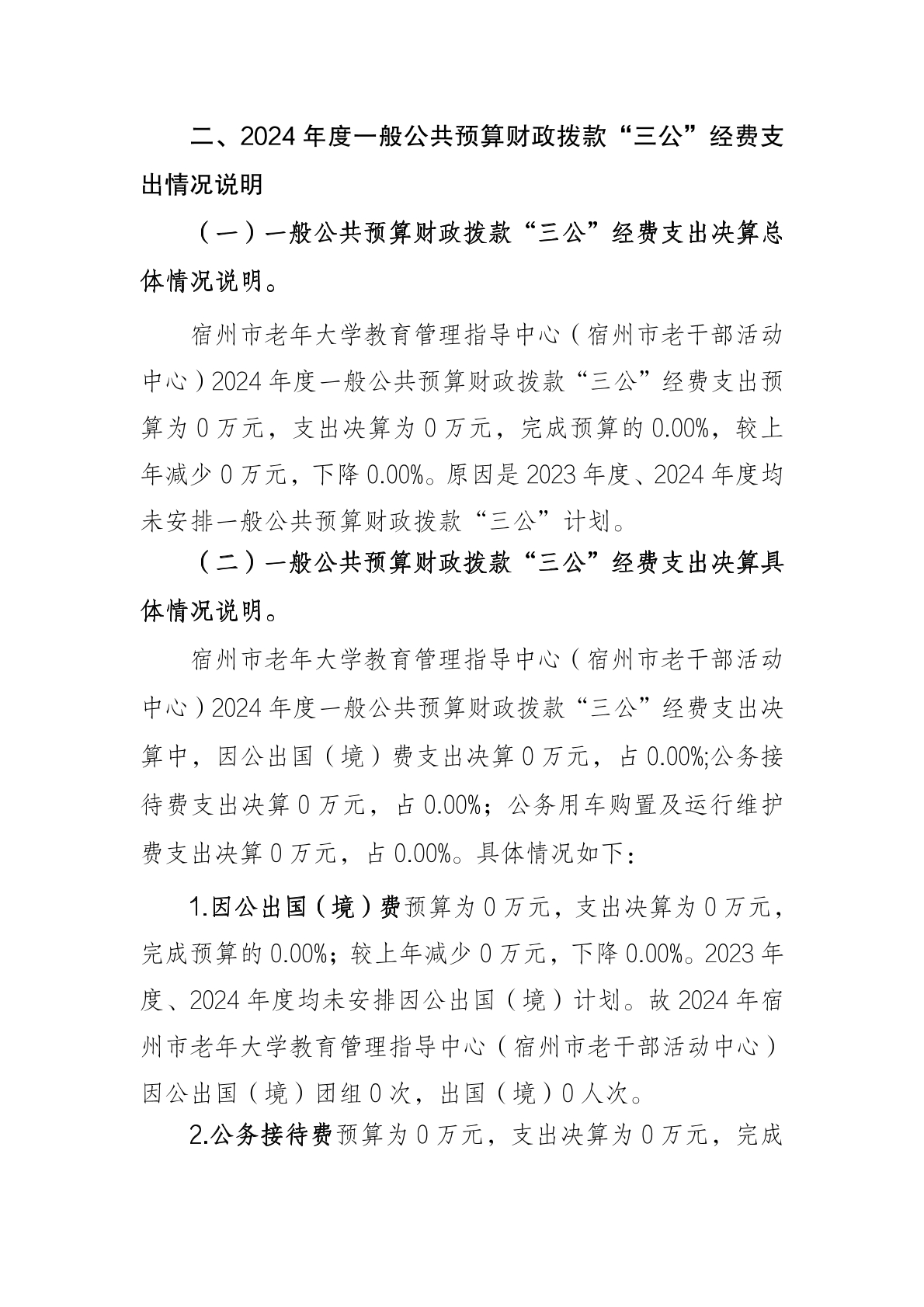 宿州市老年大学教育管理指导中心(宿州市老干部活 动中心)2024 年度一般公共预算财政拨款“三公”经 费支出决算