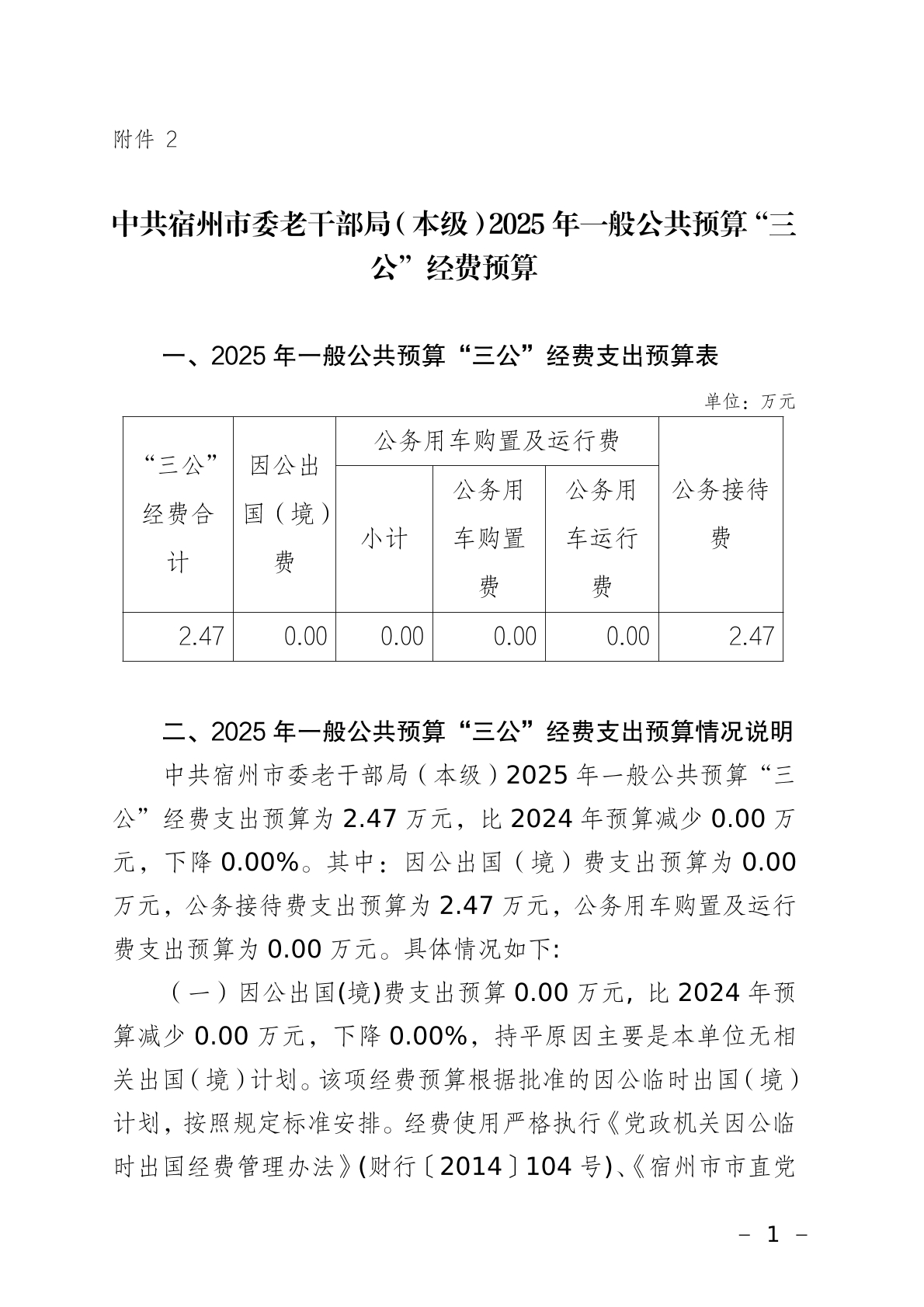 中共宿州市委老干部局(本级)2025年一般公共预算 “三公”经费预算