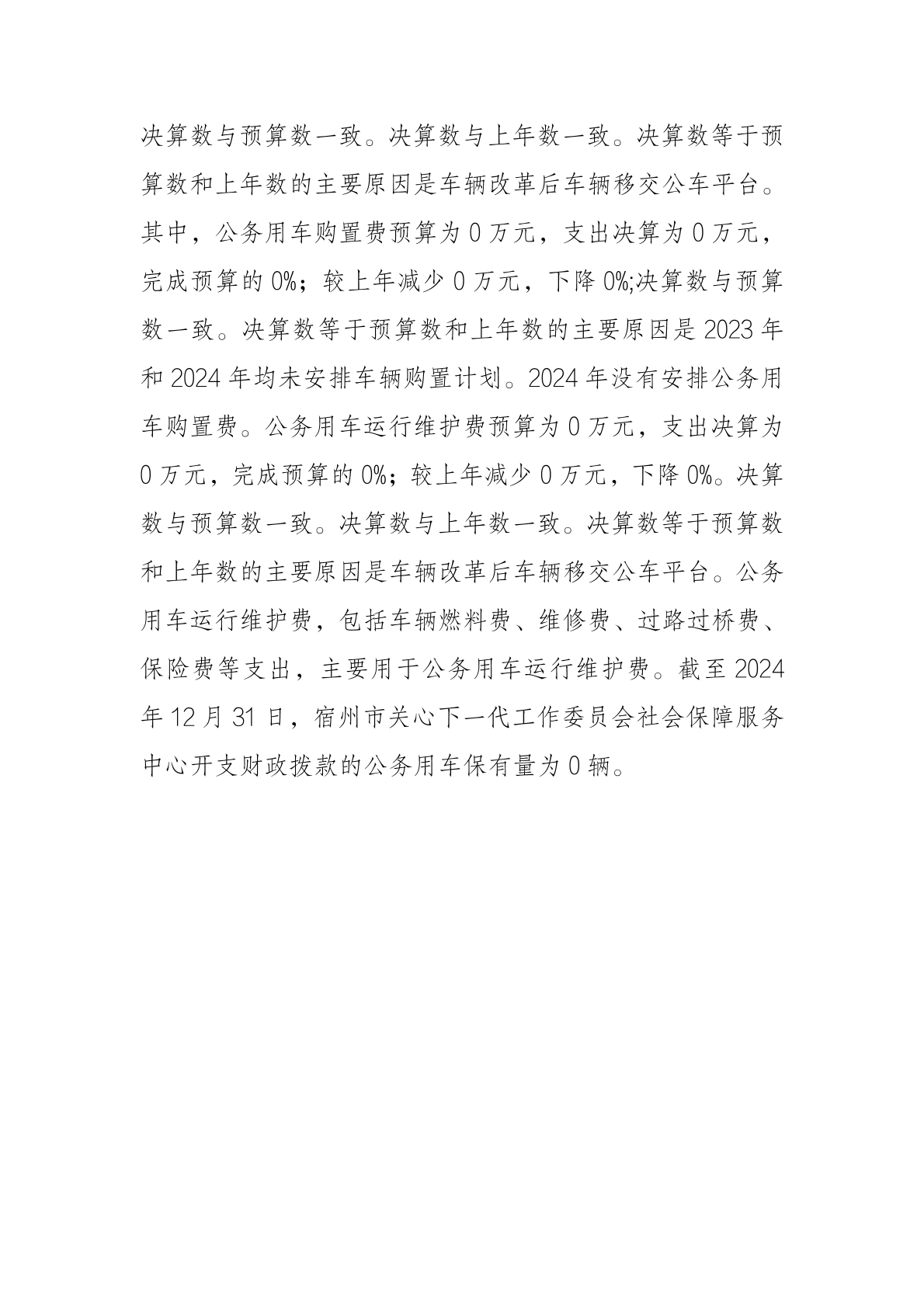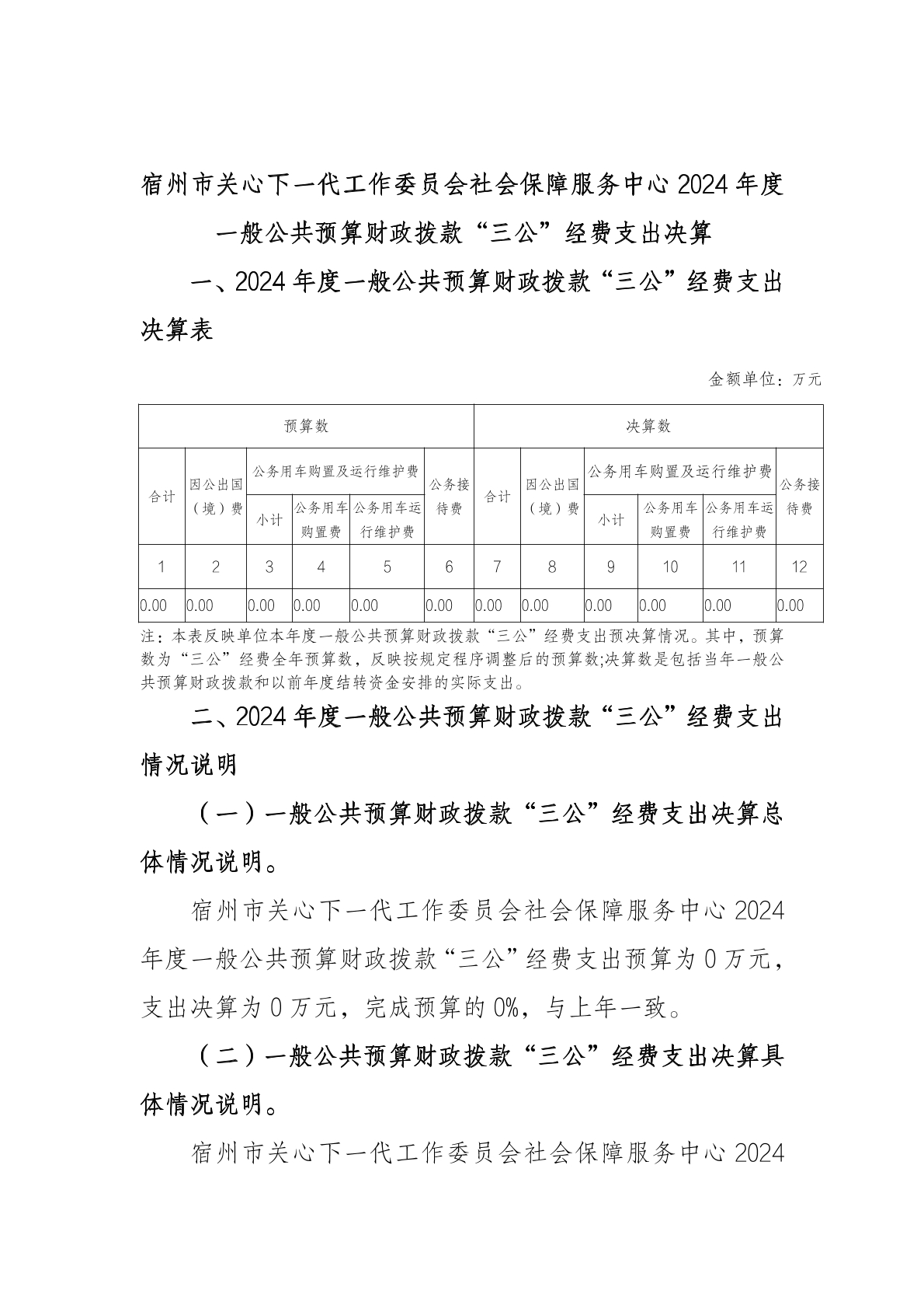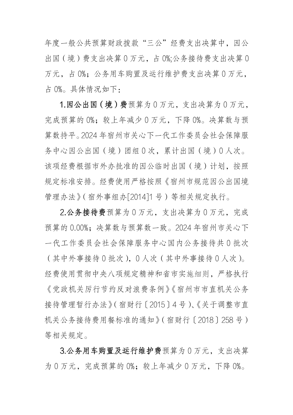 宿州市关心下一代工作委员会社会保障服务中心 2024 年度 一般公共预算财政拨款“三公”经费支出决算