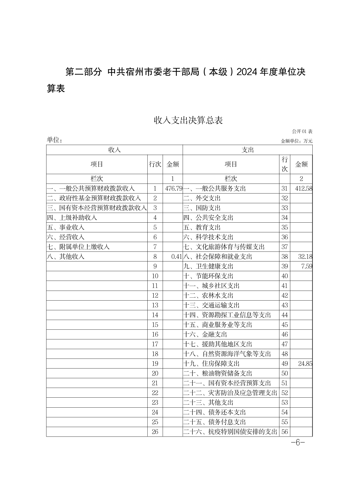 中共宿州市委老干部局(本级)2024 年度单位 决算
