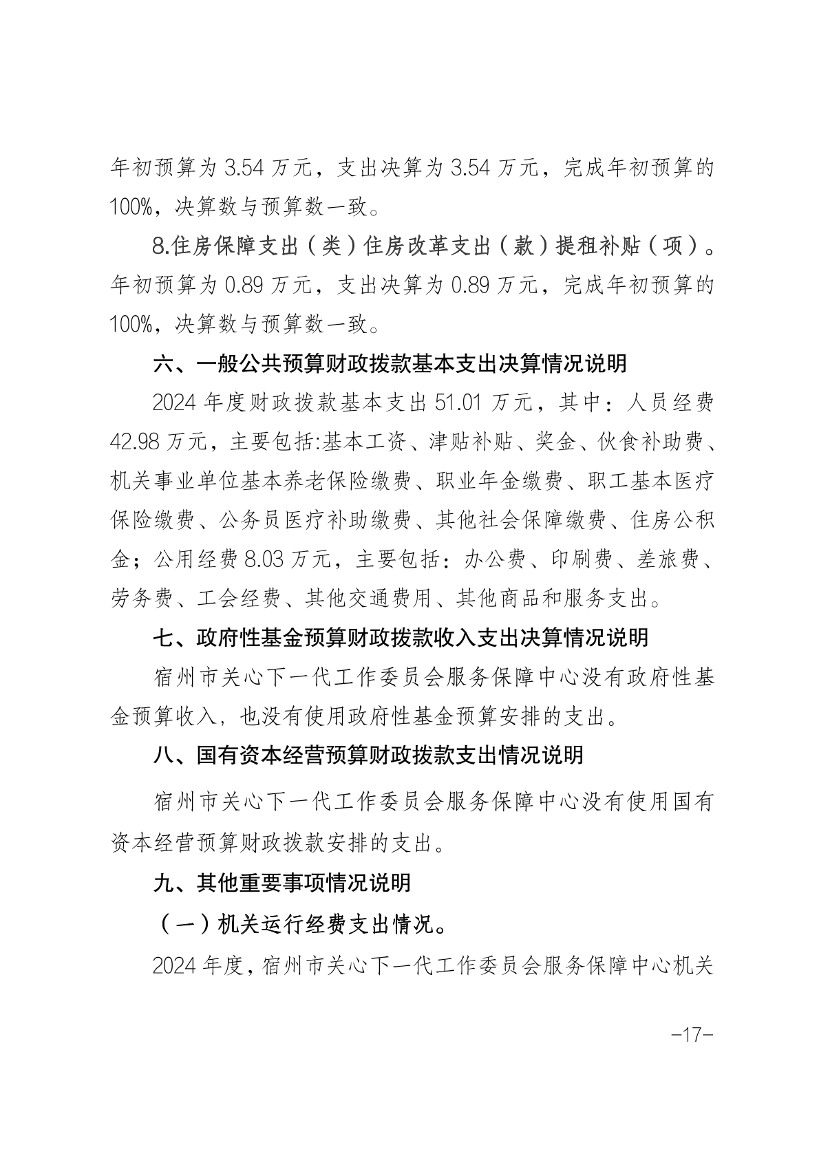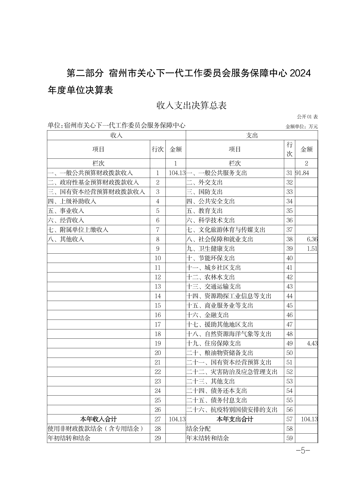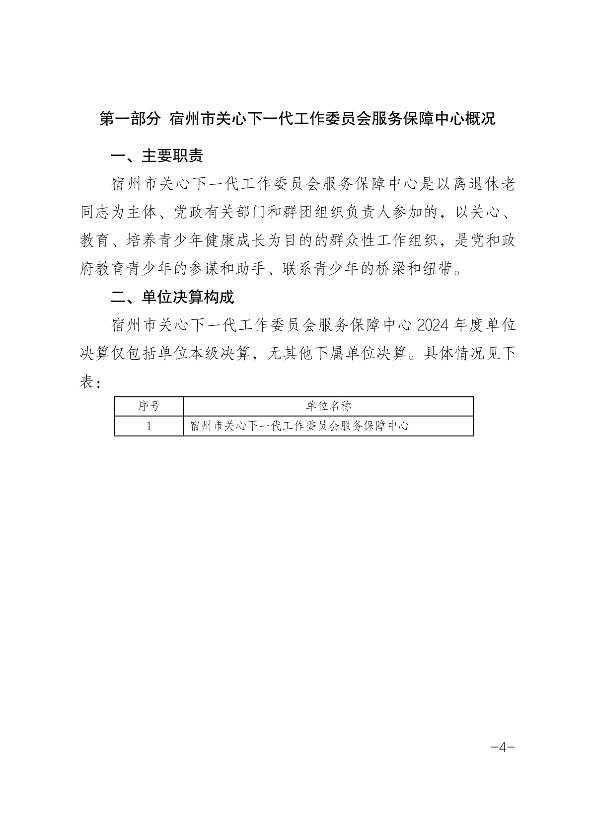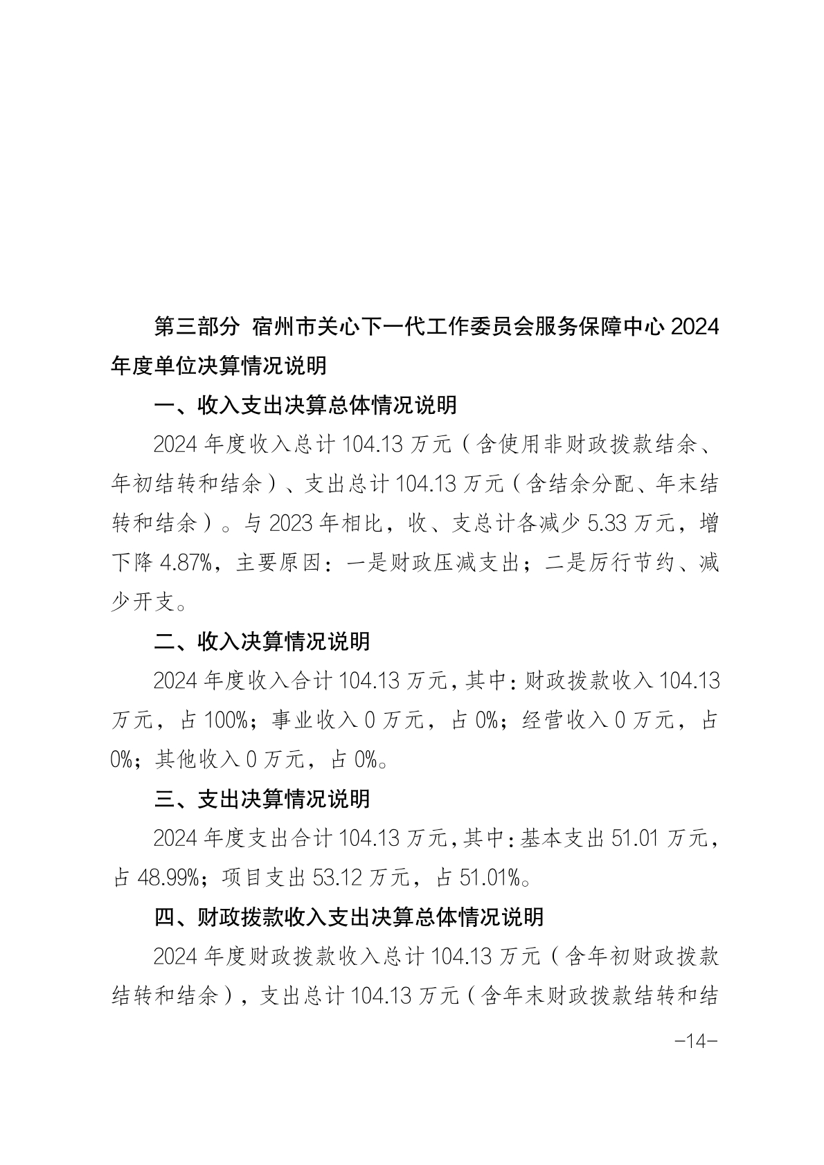 宿州市关心下一代工作委员会服务保障中心 2024 年度单位决算