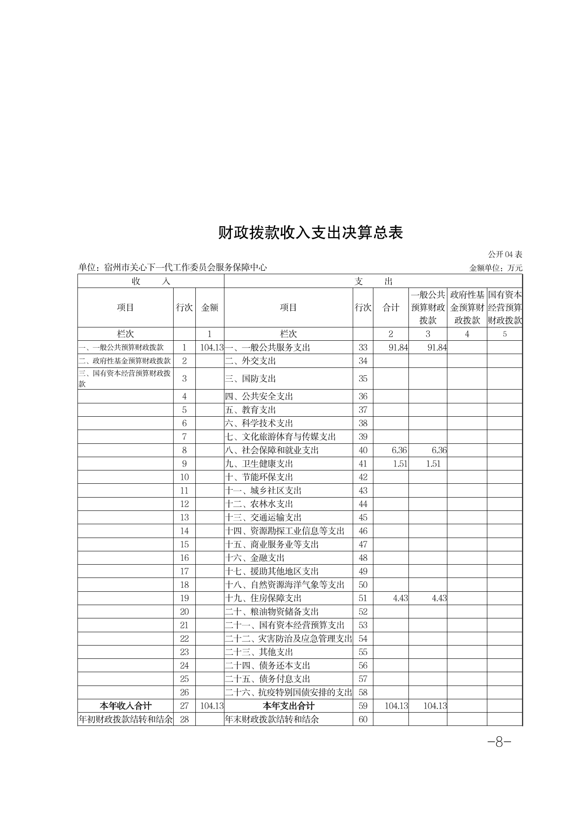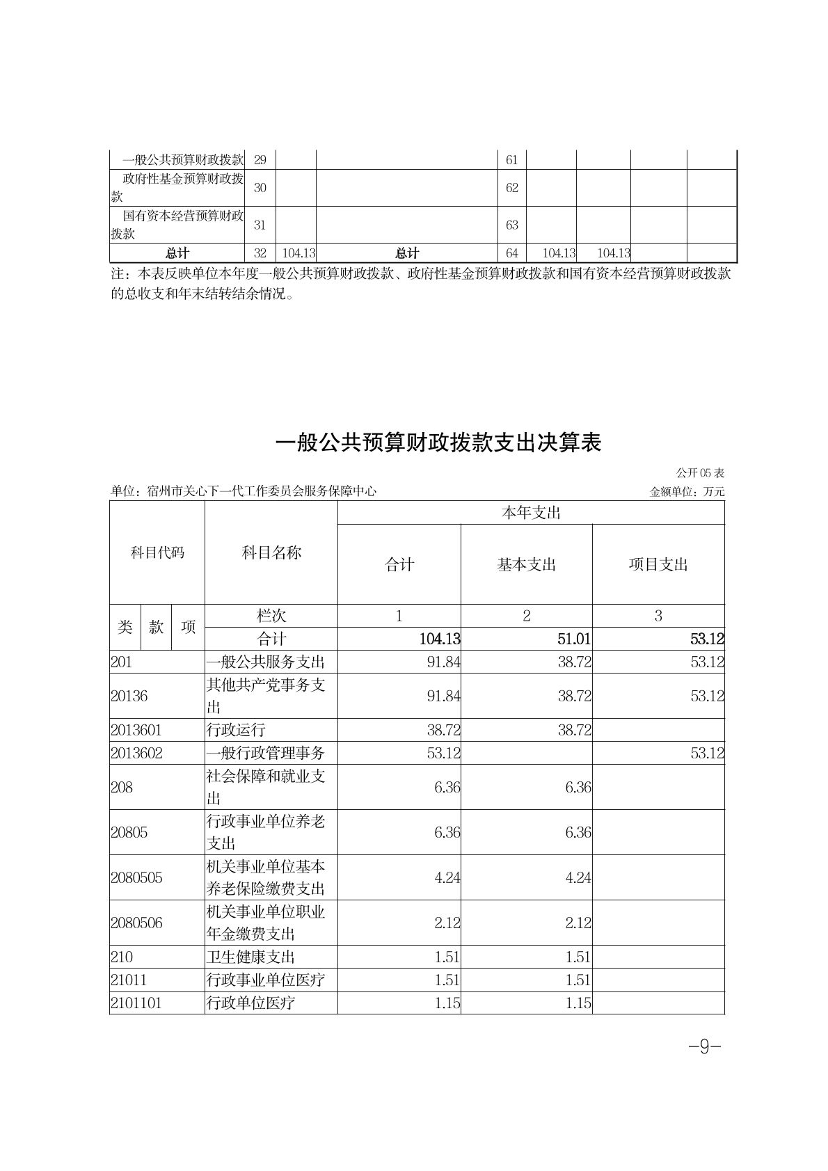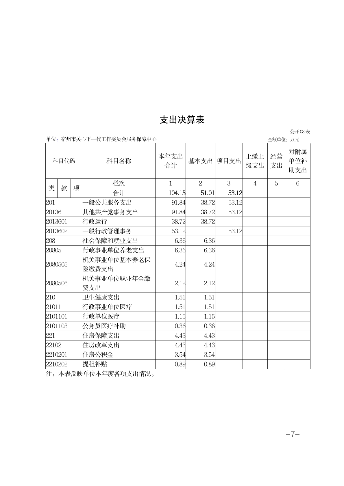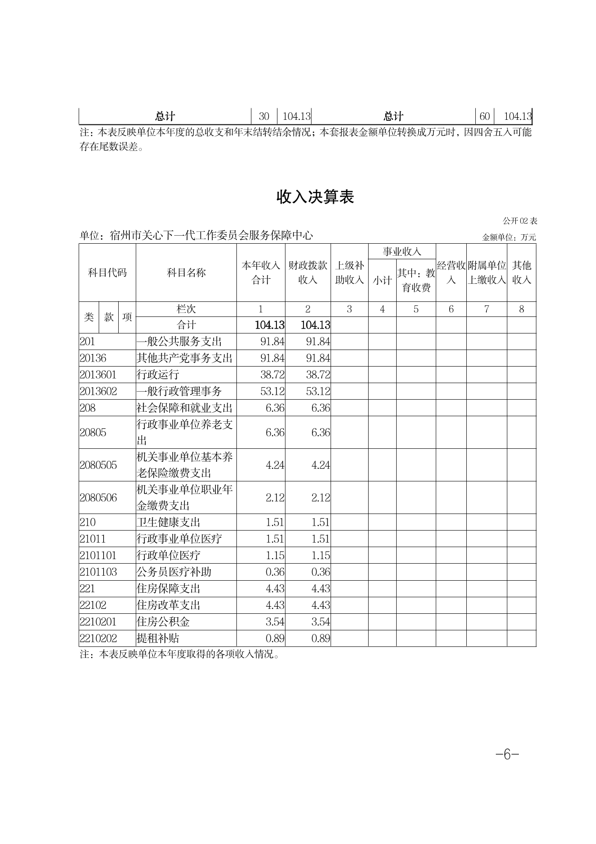 宿州市关心下一代工作委员会服务保障中心 2024 年度单位决算
