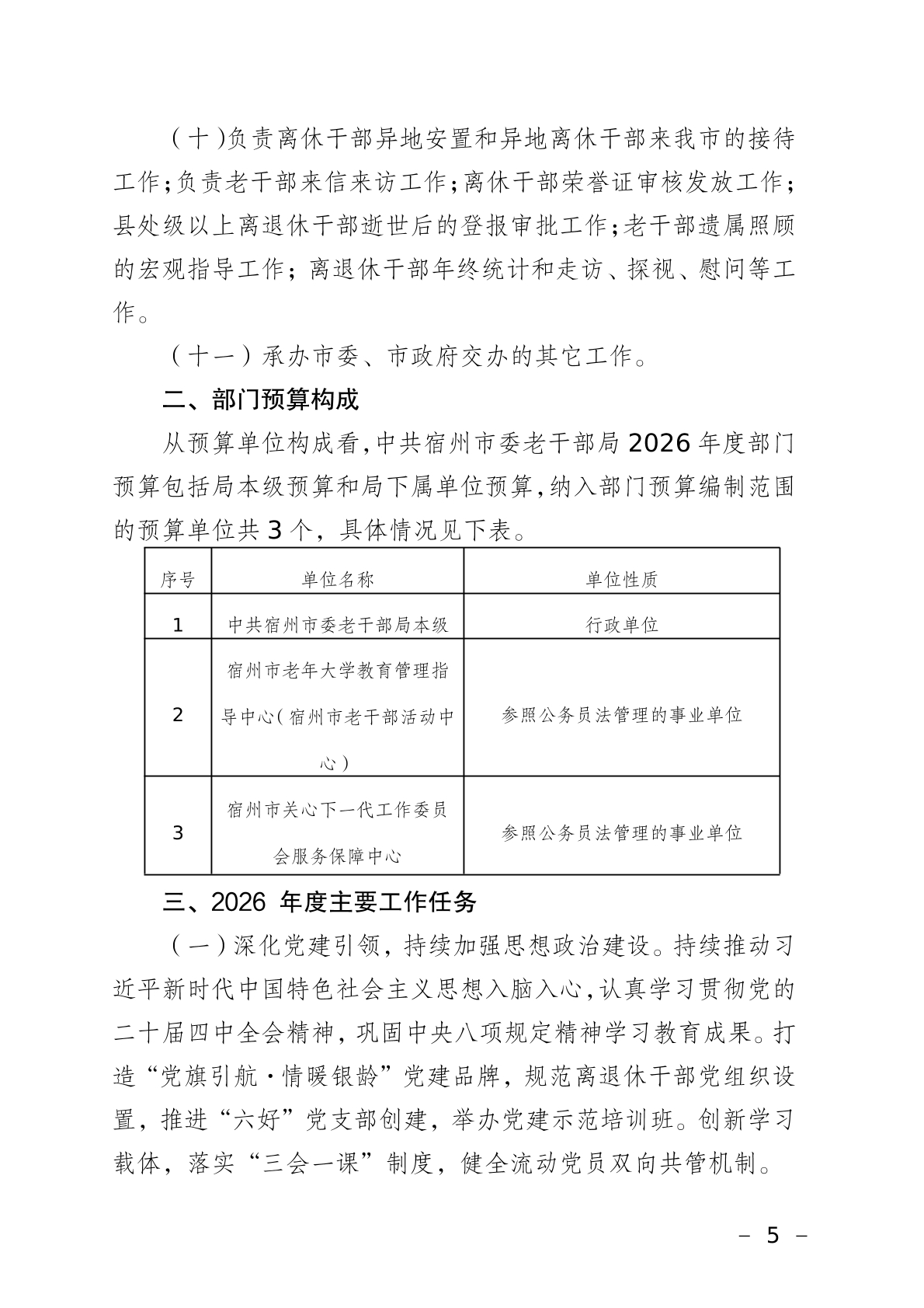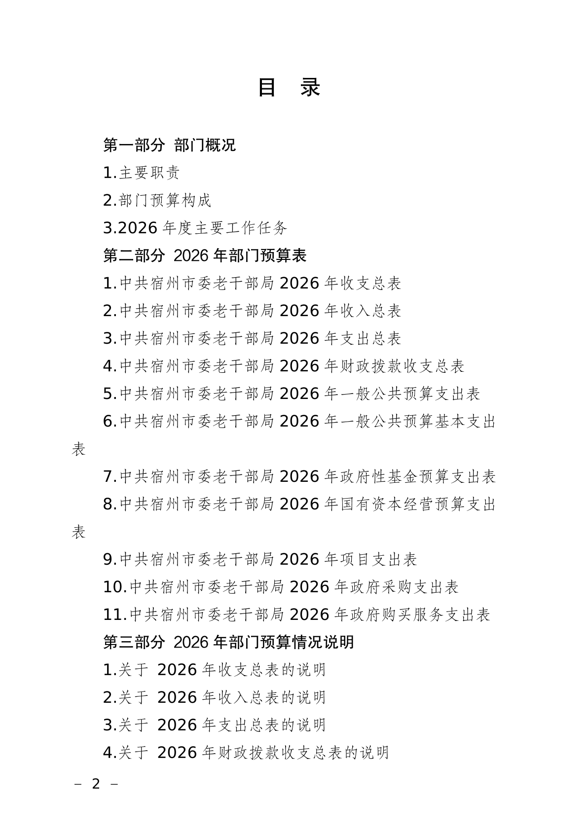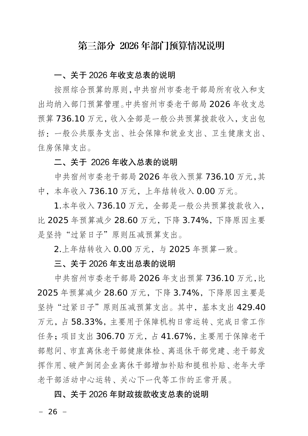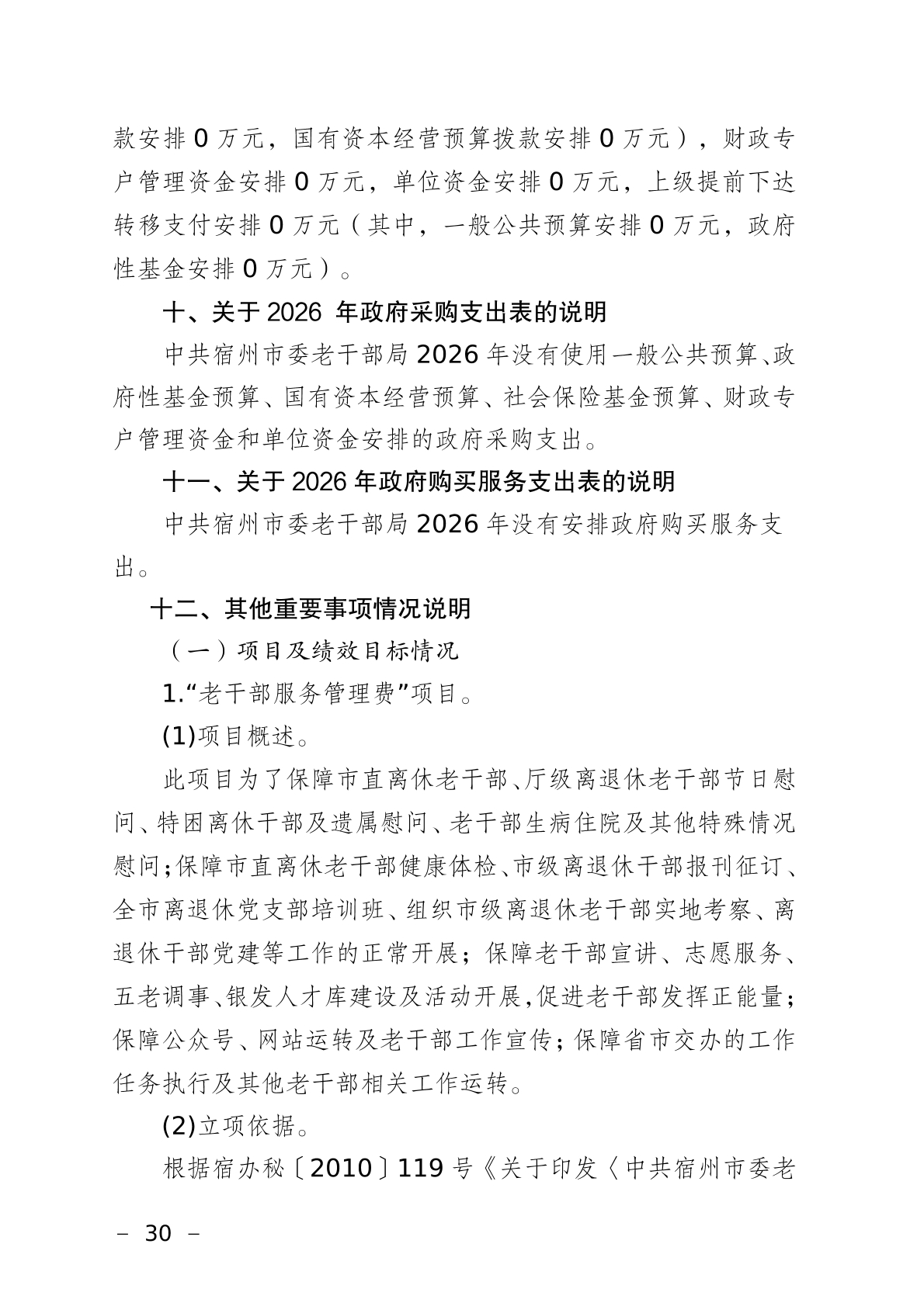 中共宿州市委老干部局2026年部门预算
