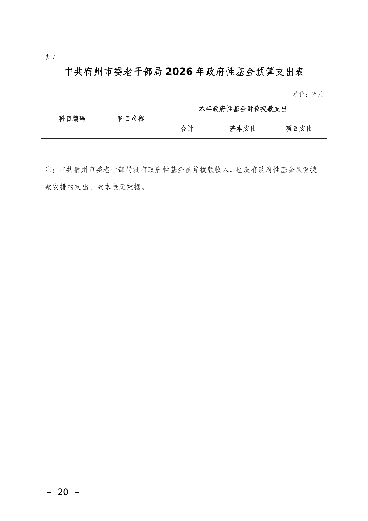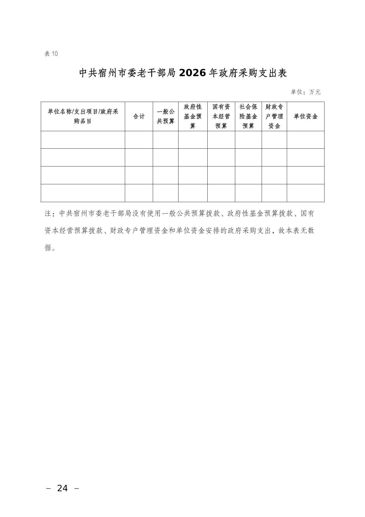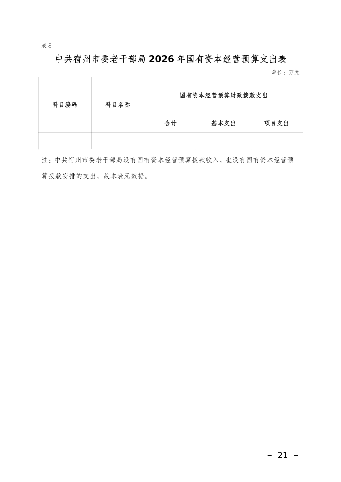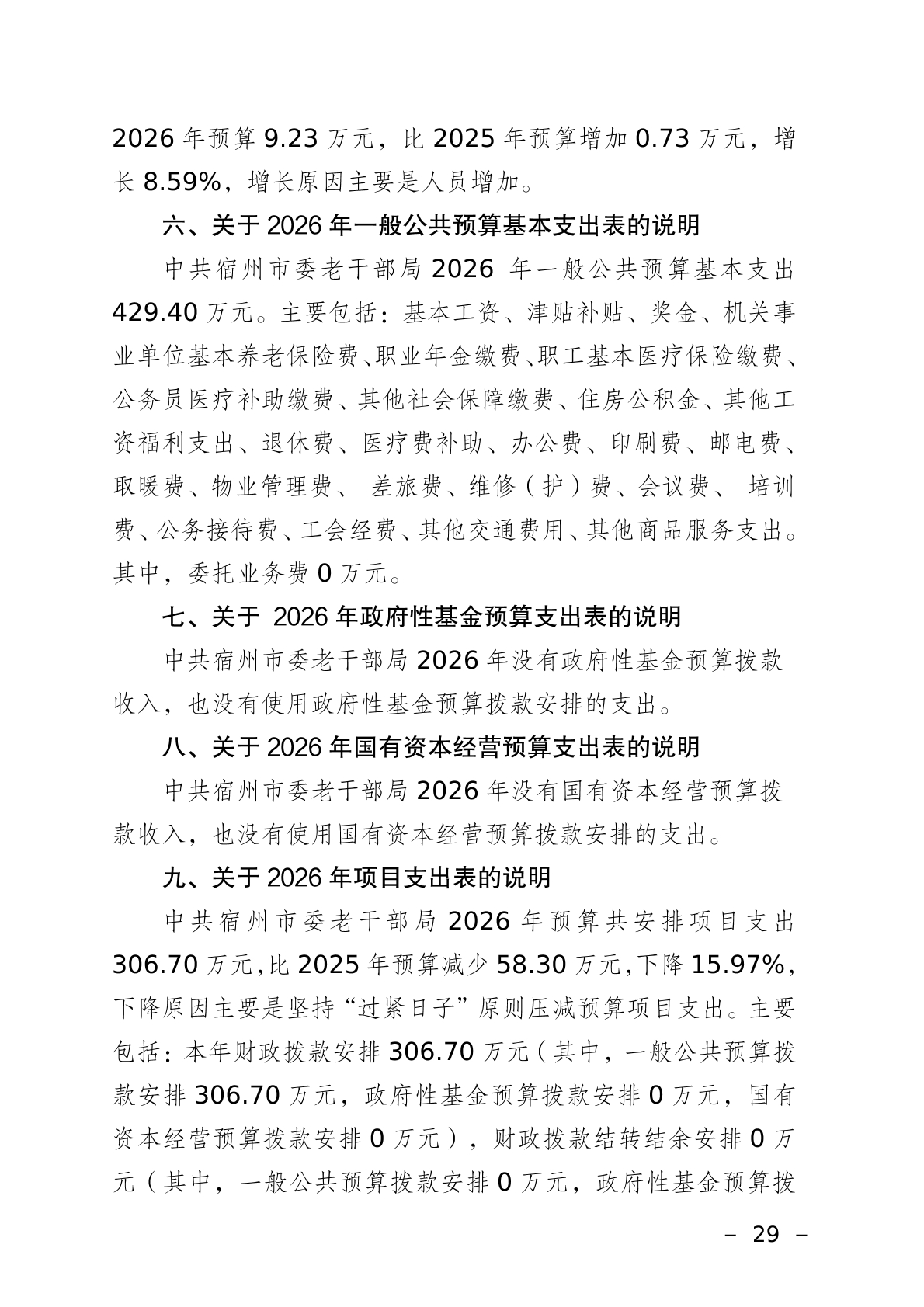 中共宿州市委老干部局2026年部门预算