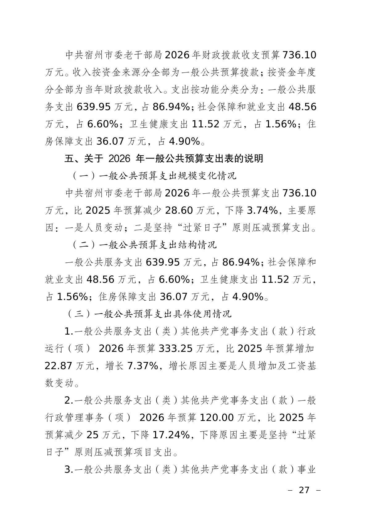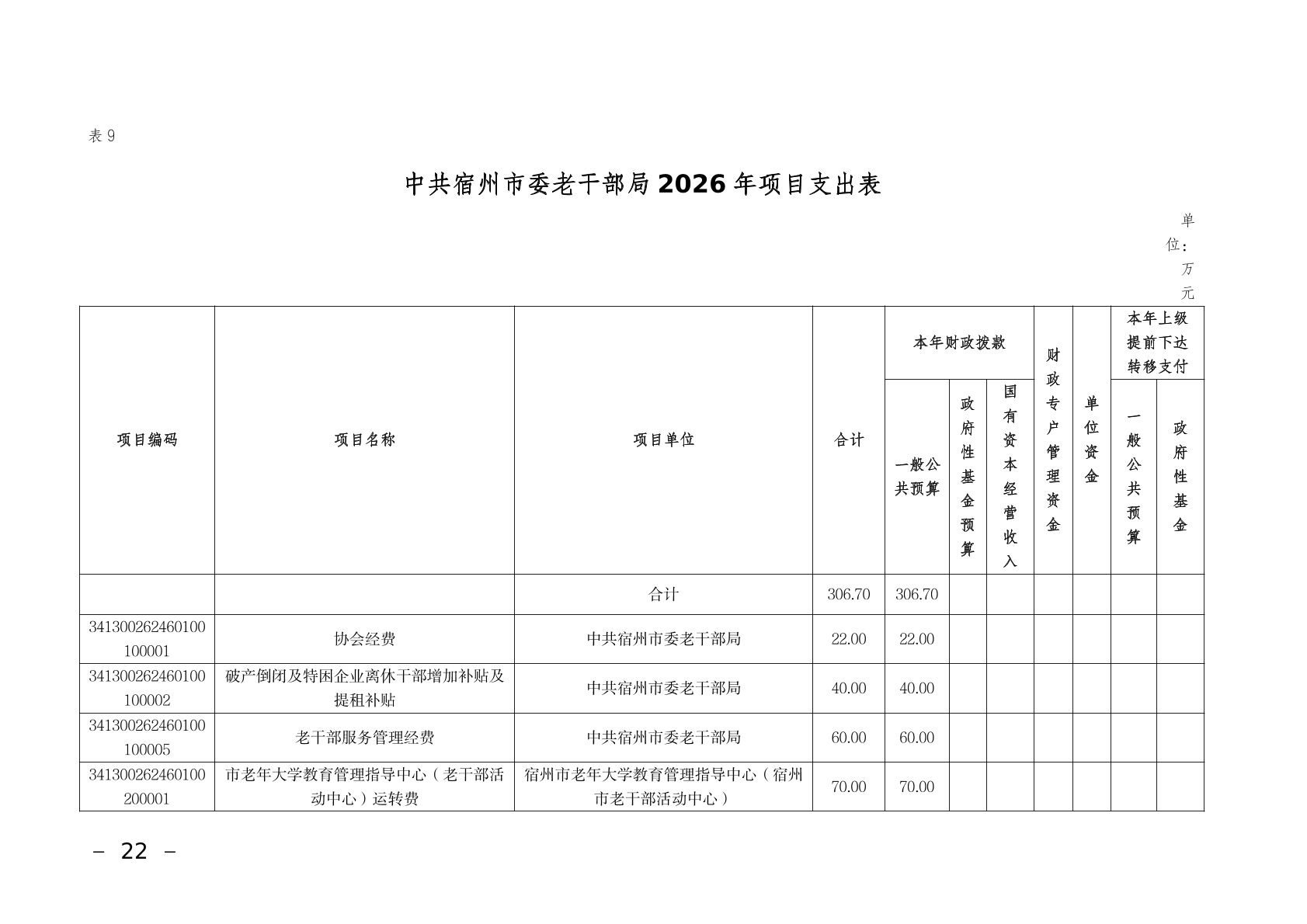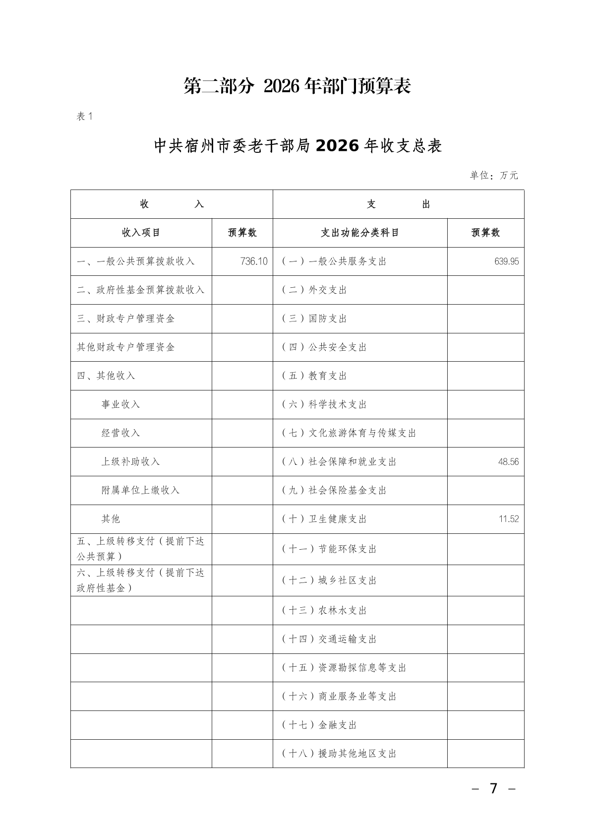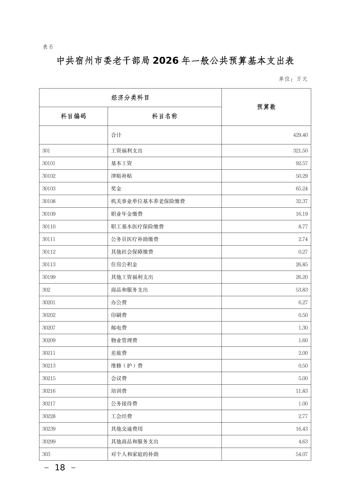 中共宿州市委老干部局2026年部门预算