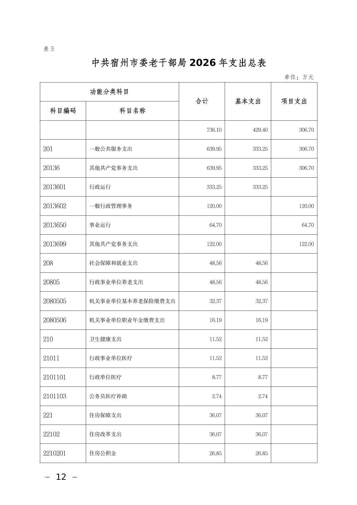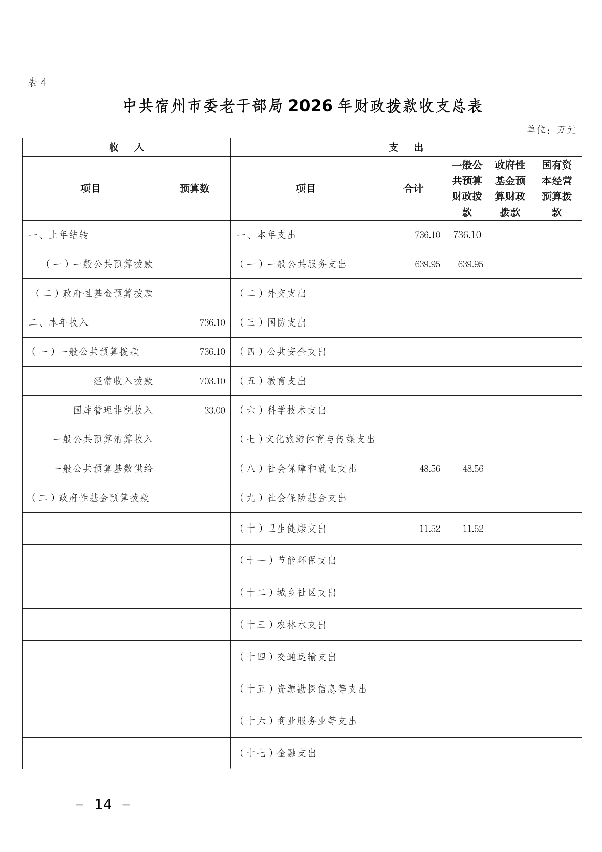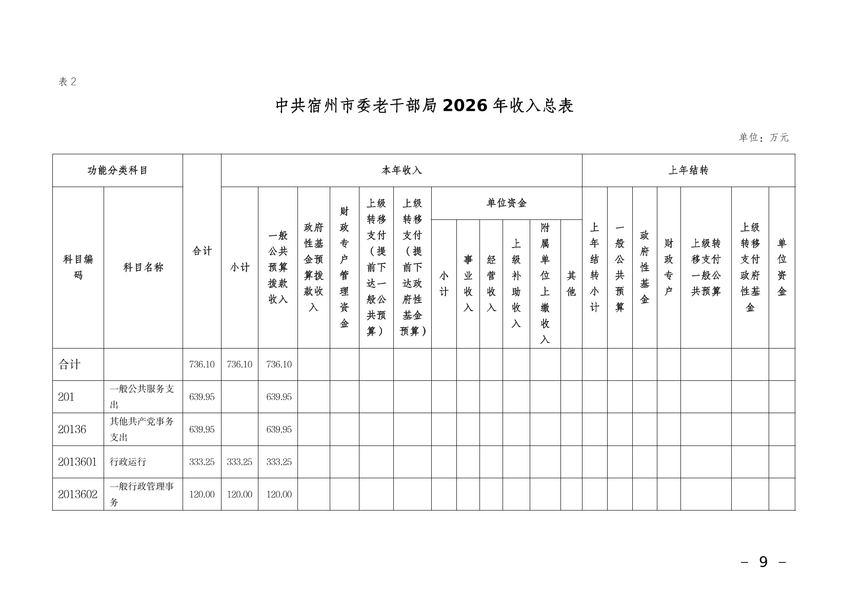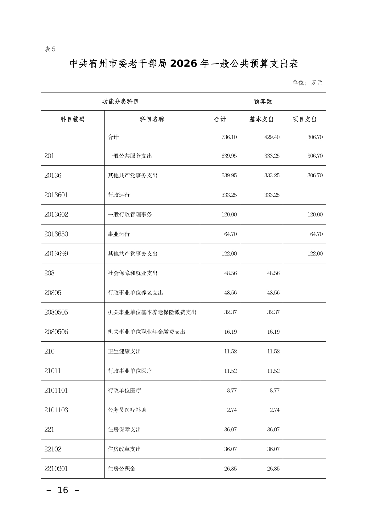 中共宿州市委老干部局2026年部门预算
