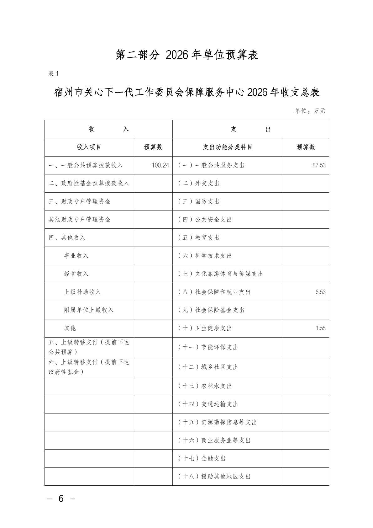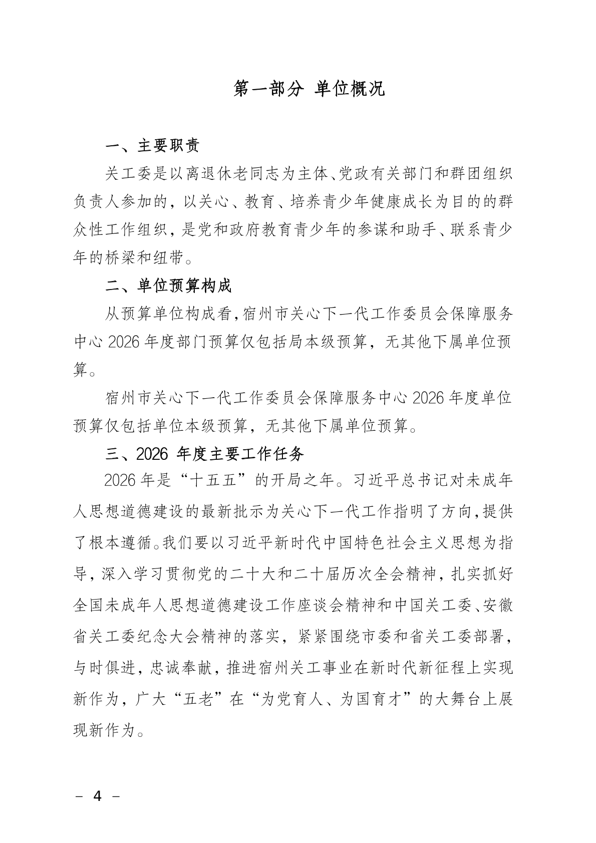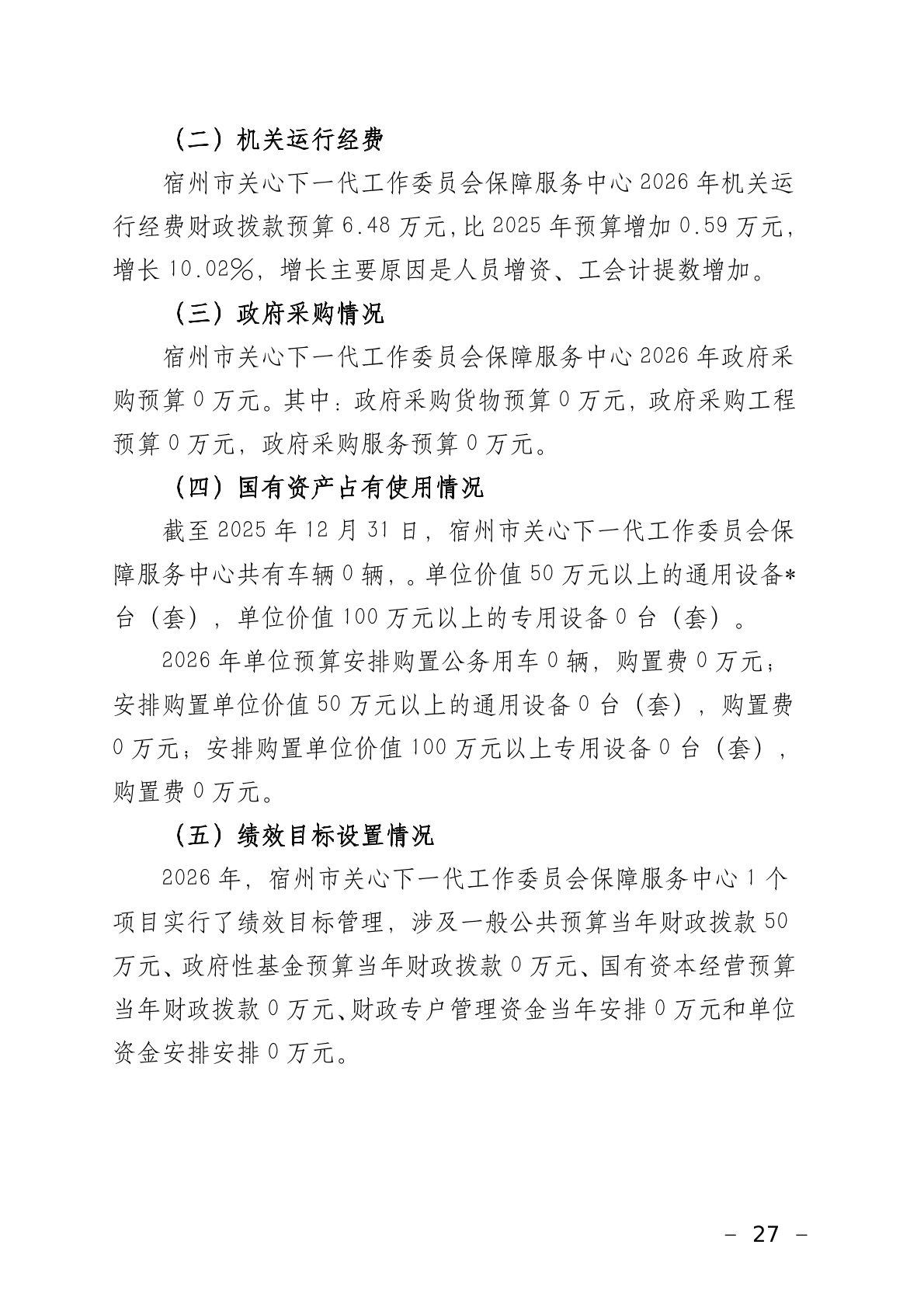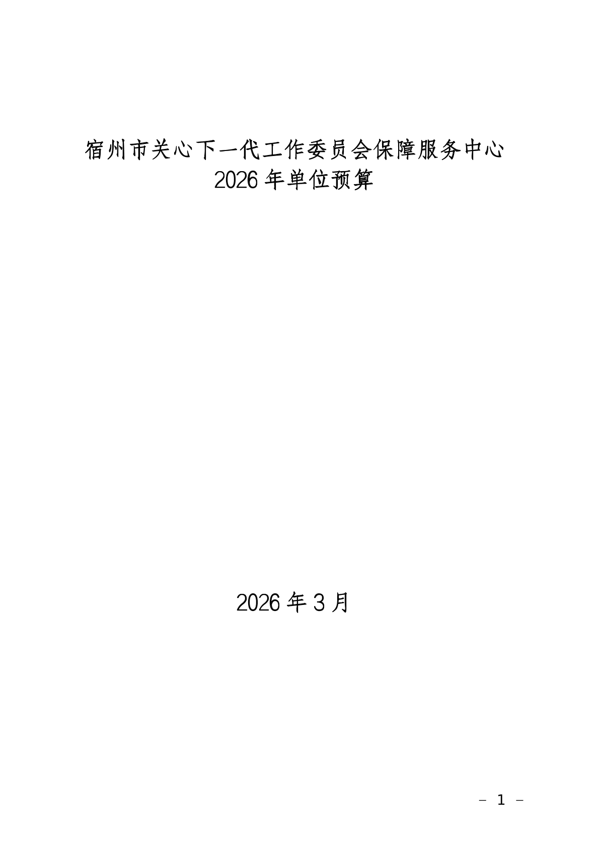 宿州市关心下一代工作委员会保障服务中心2026年单位预算