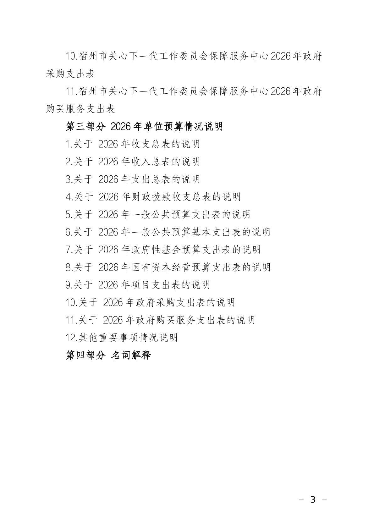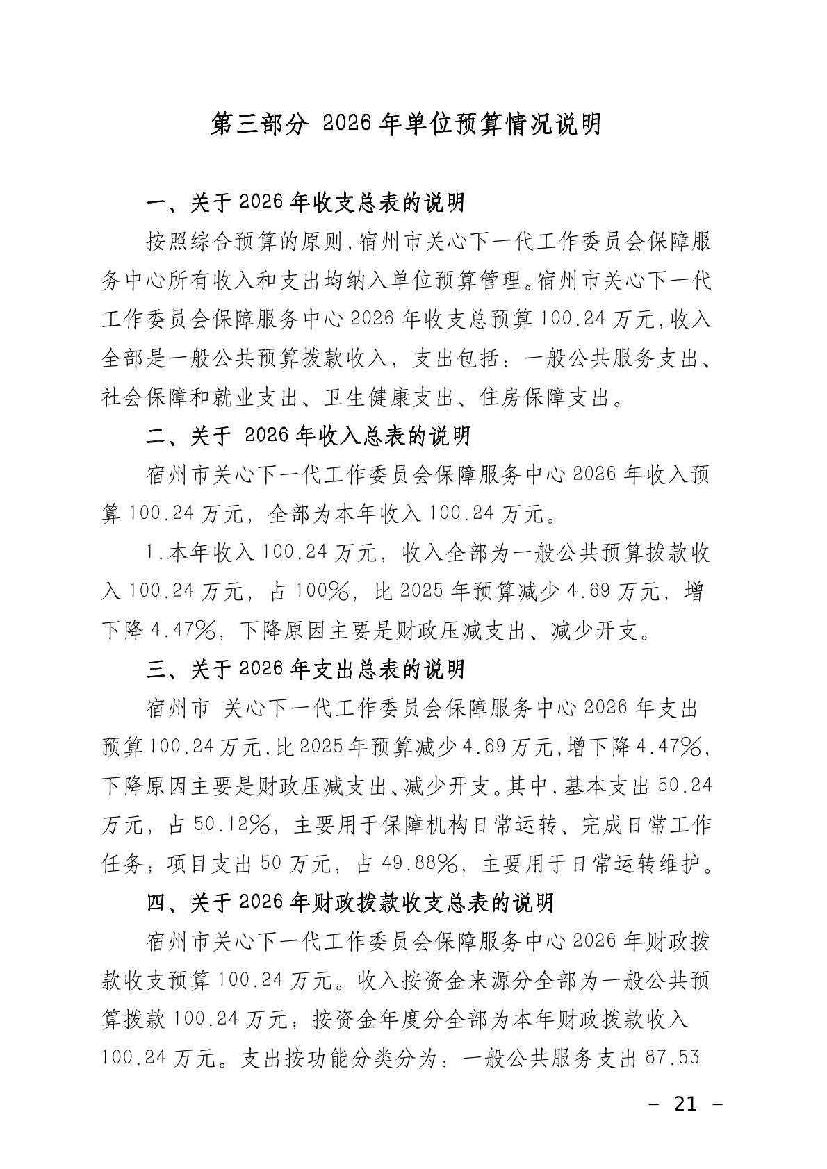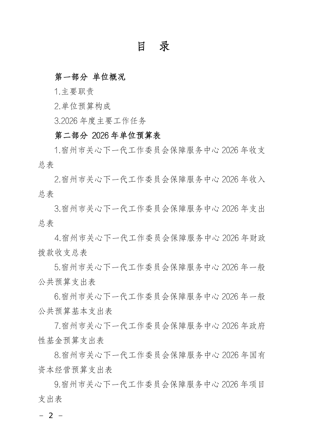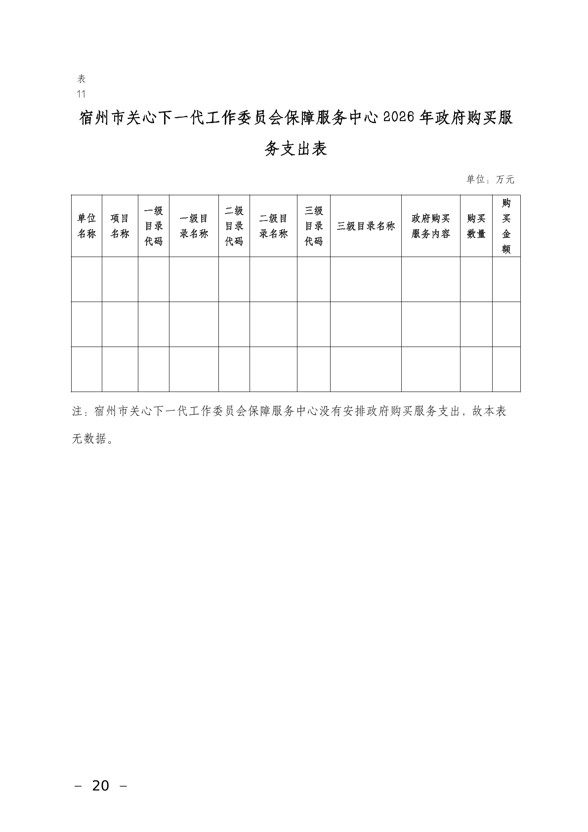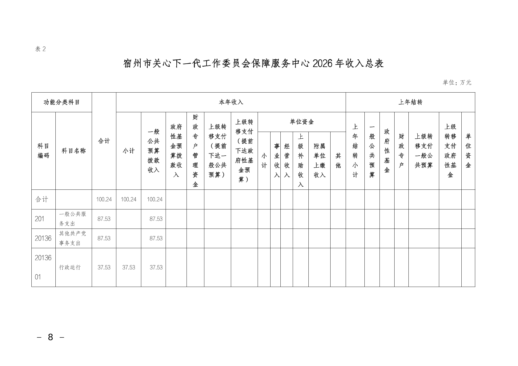 宿州市关心下一代工作委员会保障服务中心2026年单位预算