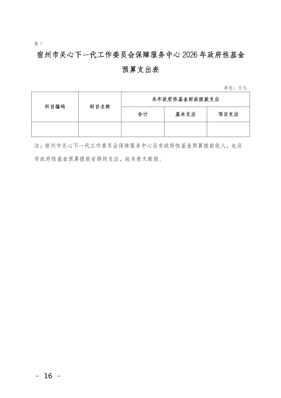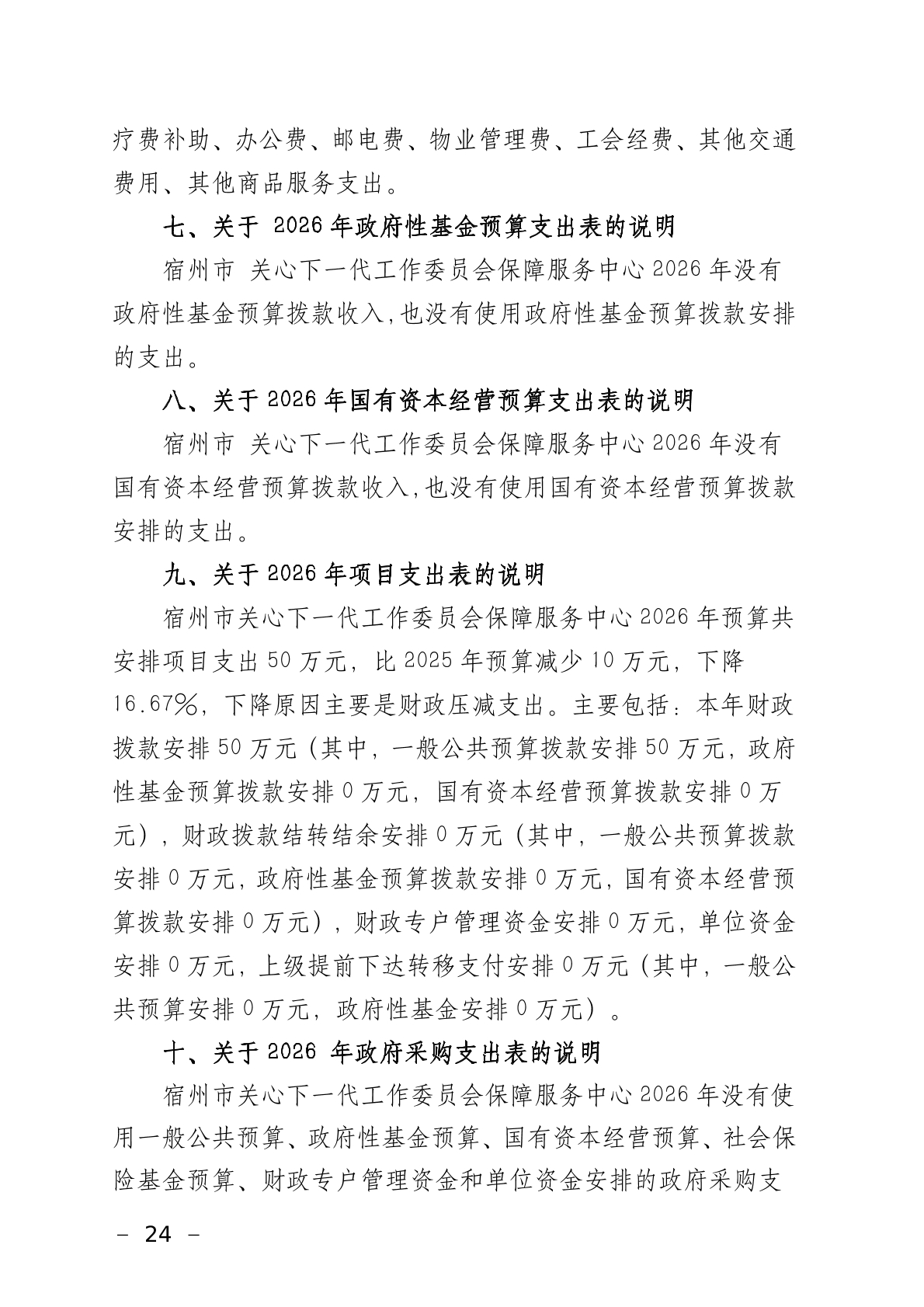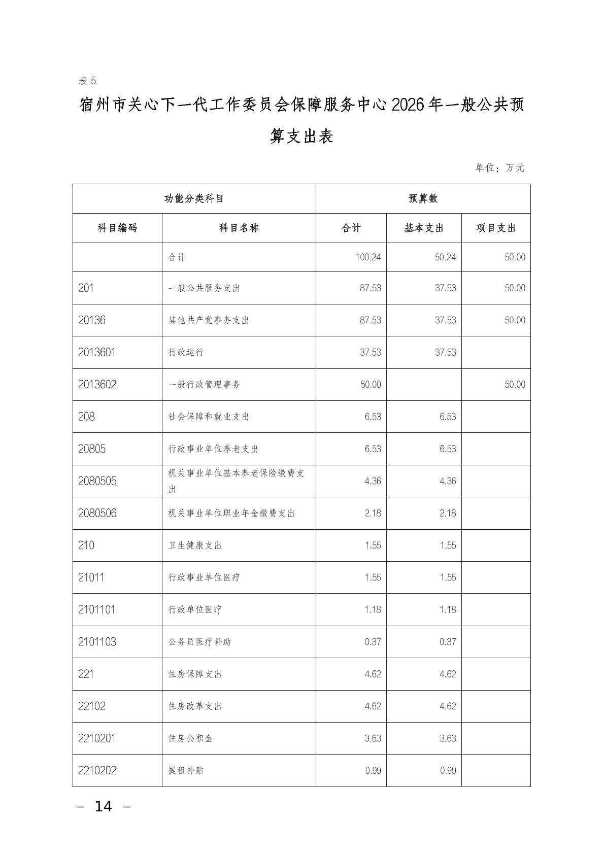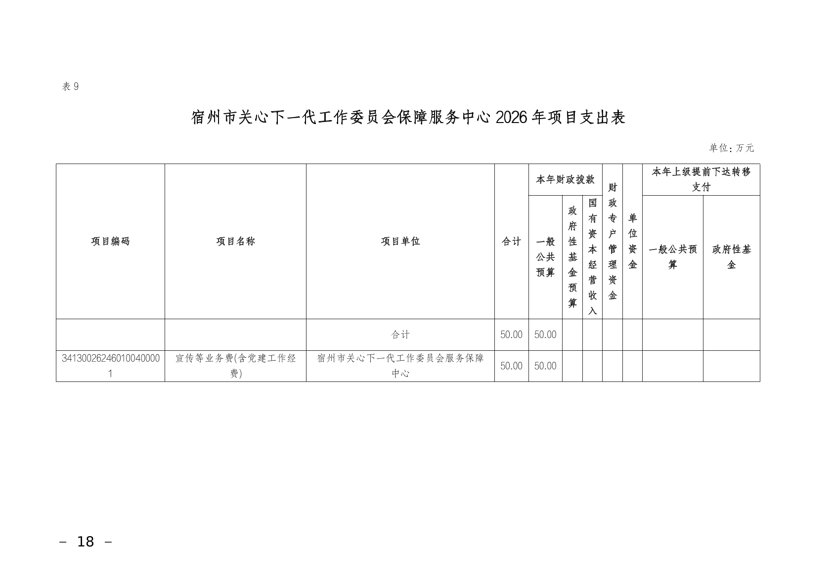 宿州市关心下一代工作委员会保障服务中心2026年单位预算