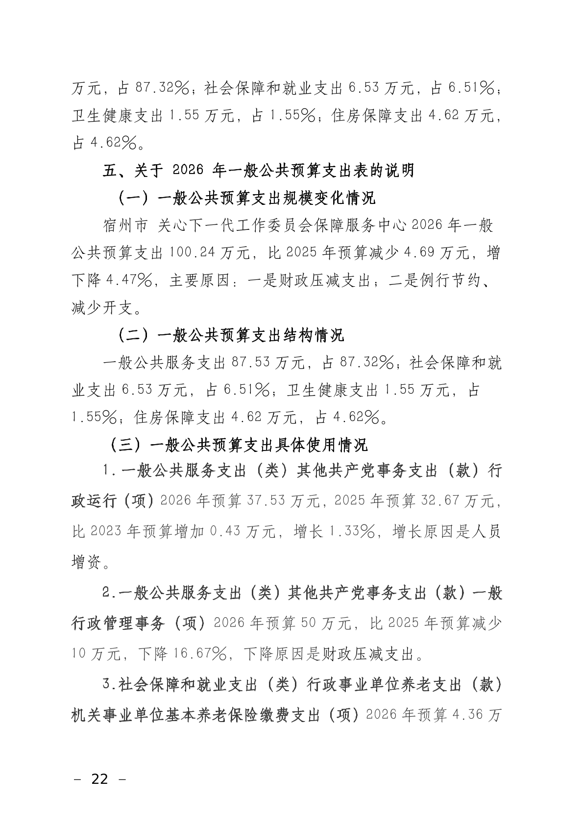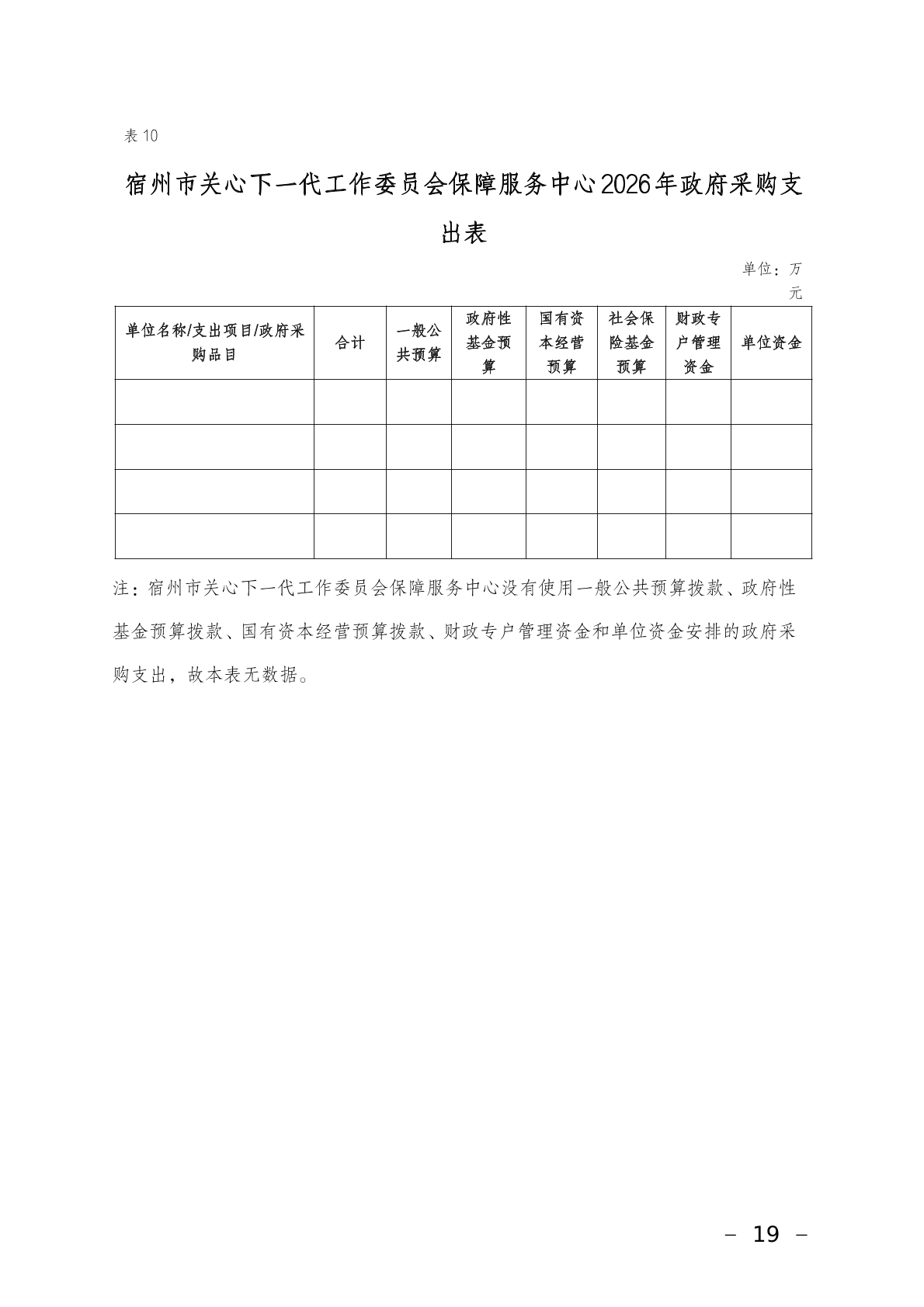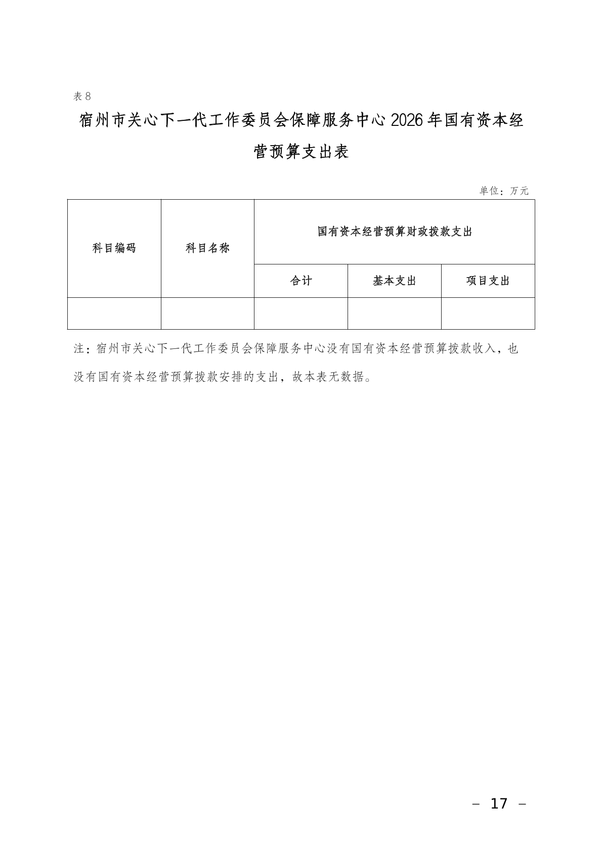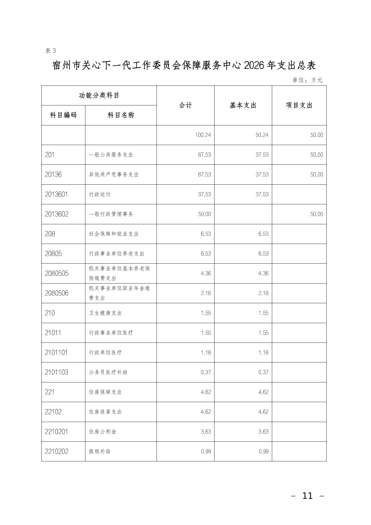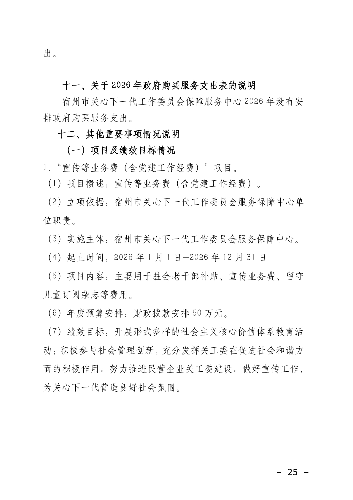 宿州市关心下一代工作委员会保障服务中心2026年单位预算