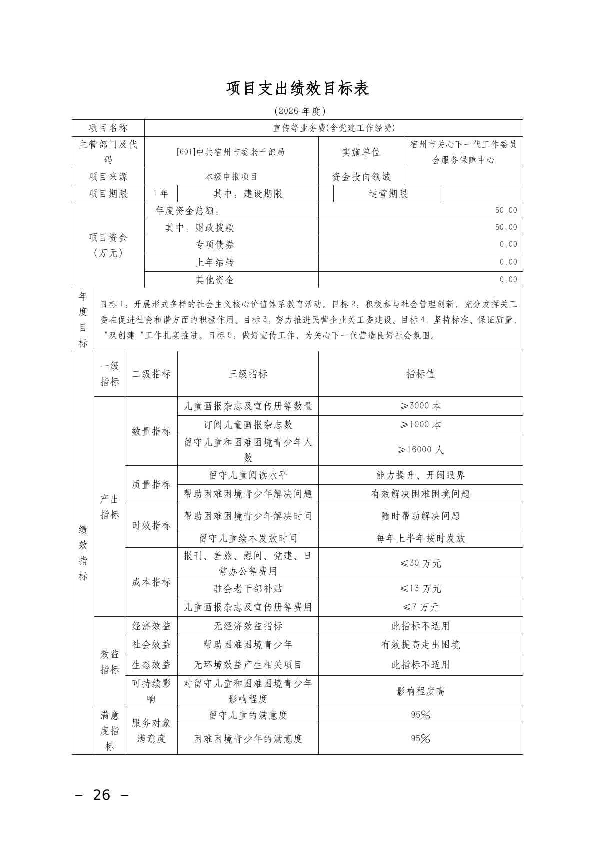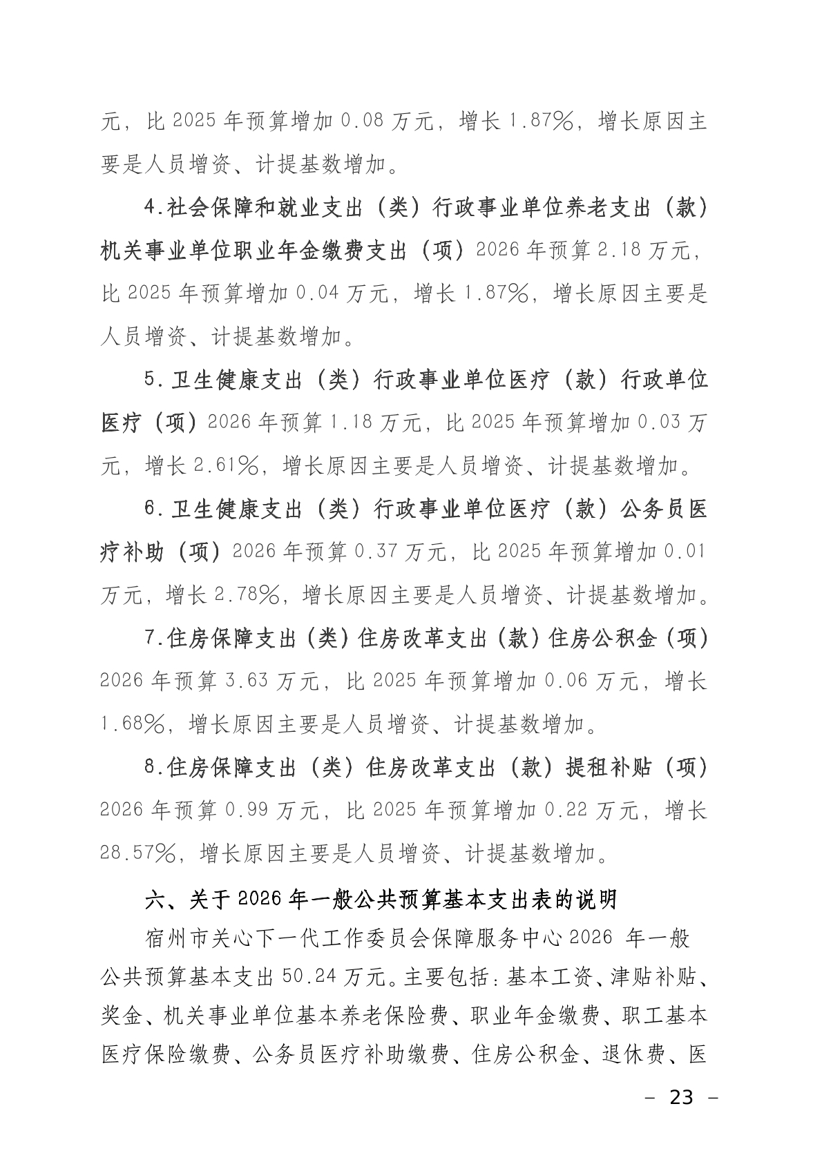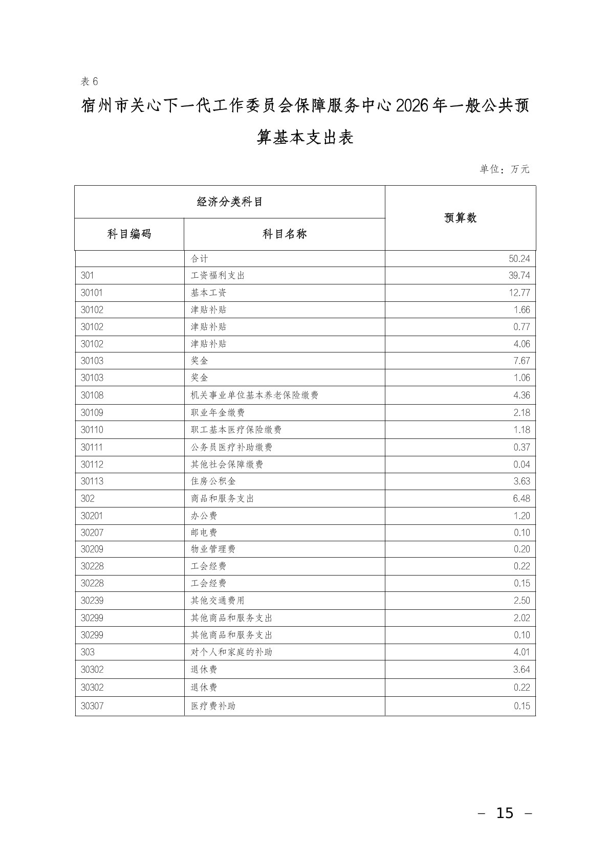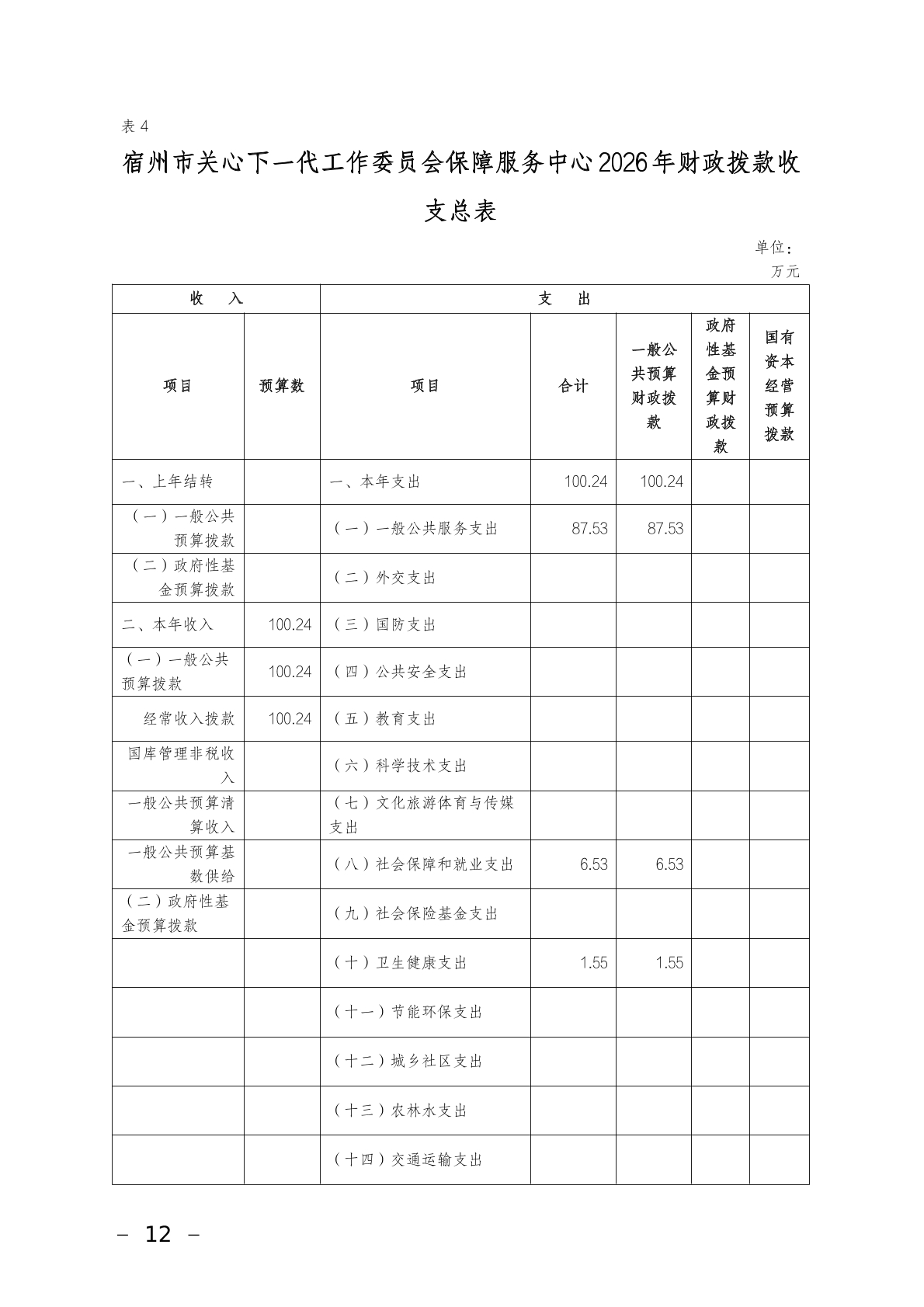 宿州市关心下一代工作委员会保障服务中心2026年单位预算